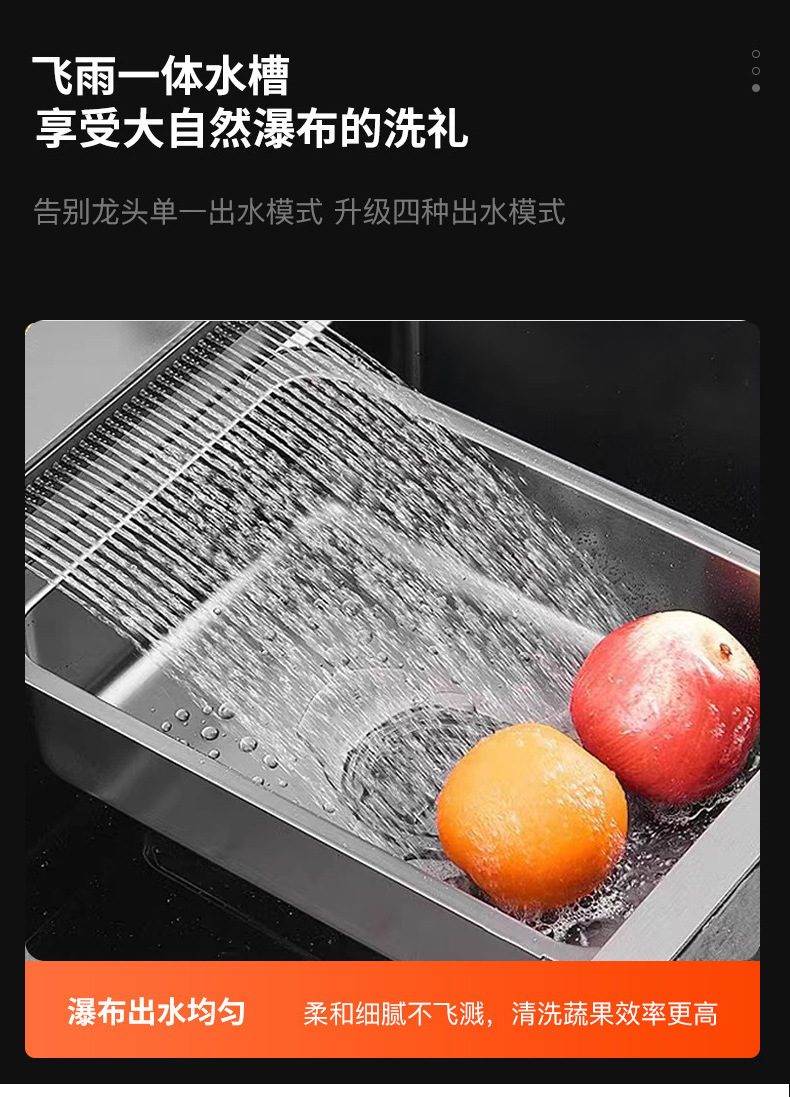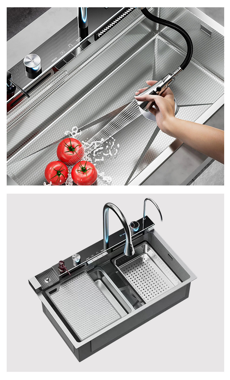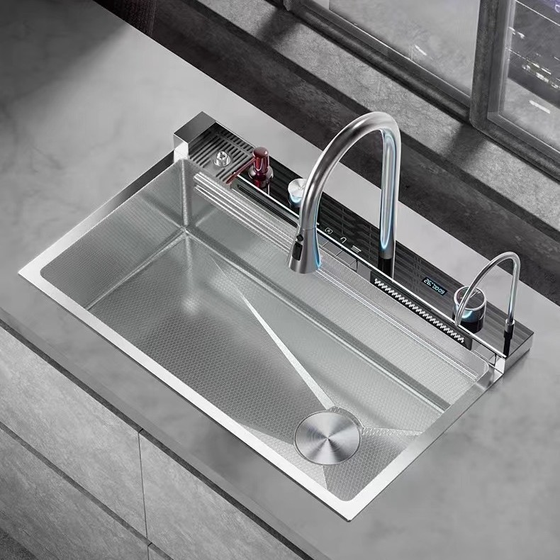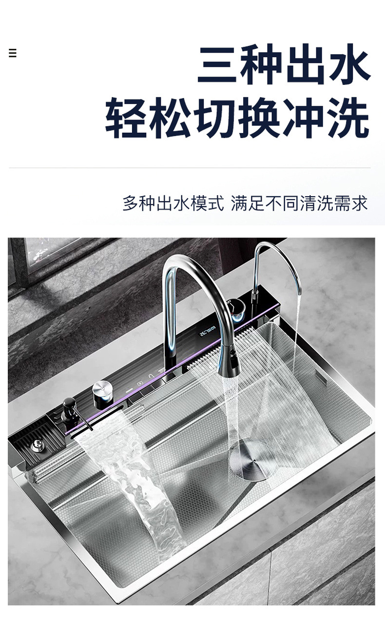 SUS304不锈钢洗碗池多功能数显瀑布飞雨大单槽水槽厨房纳米洗菜盆