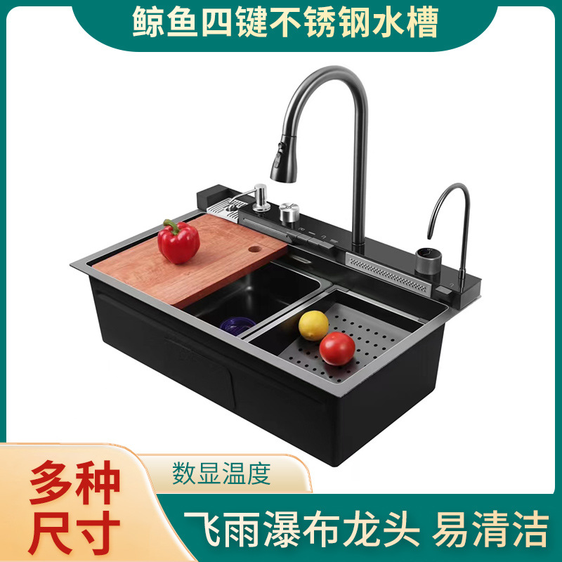 鲸鱼水槽飞雨瀑布纳米不锈钢304家用厨房洗菜盆数显家用洗碗水池