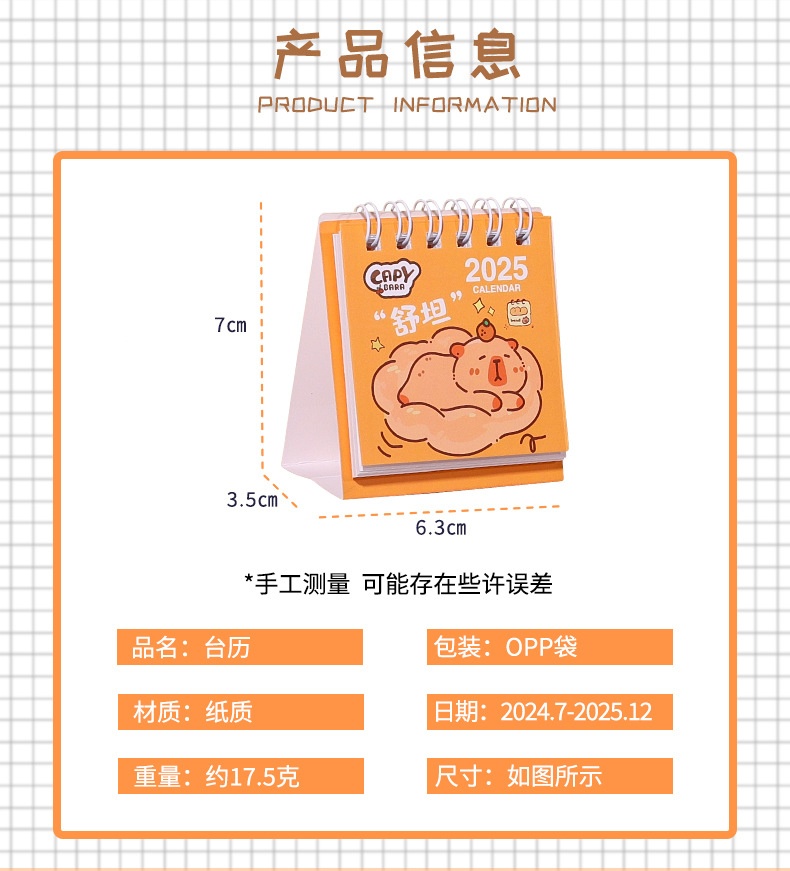 カピバラミニ卓上カレンダー インス風カレンダー 学生用携帯卓上カレンダー ポケット週間プランナー