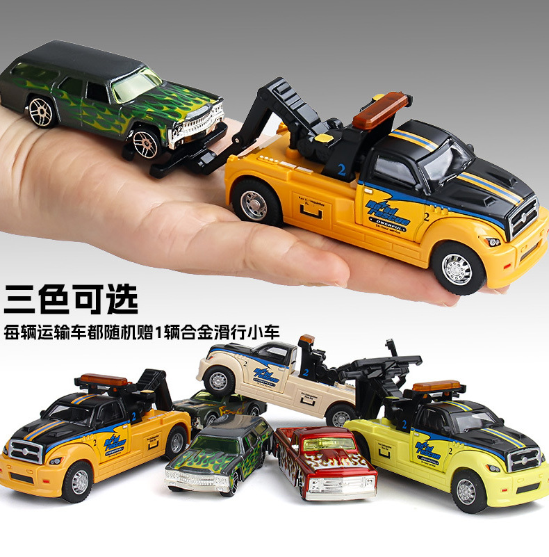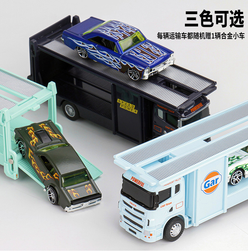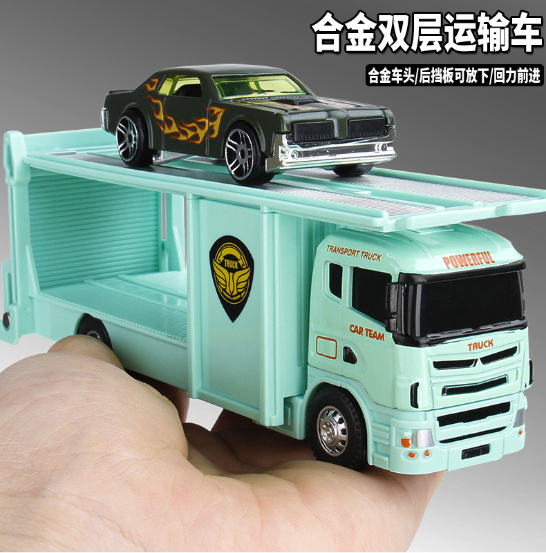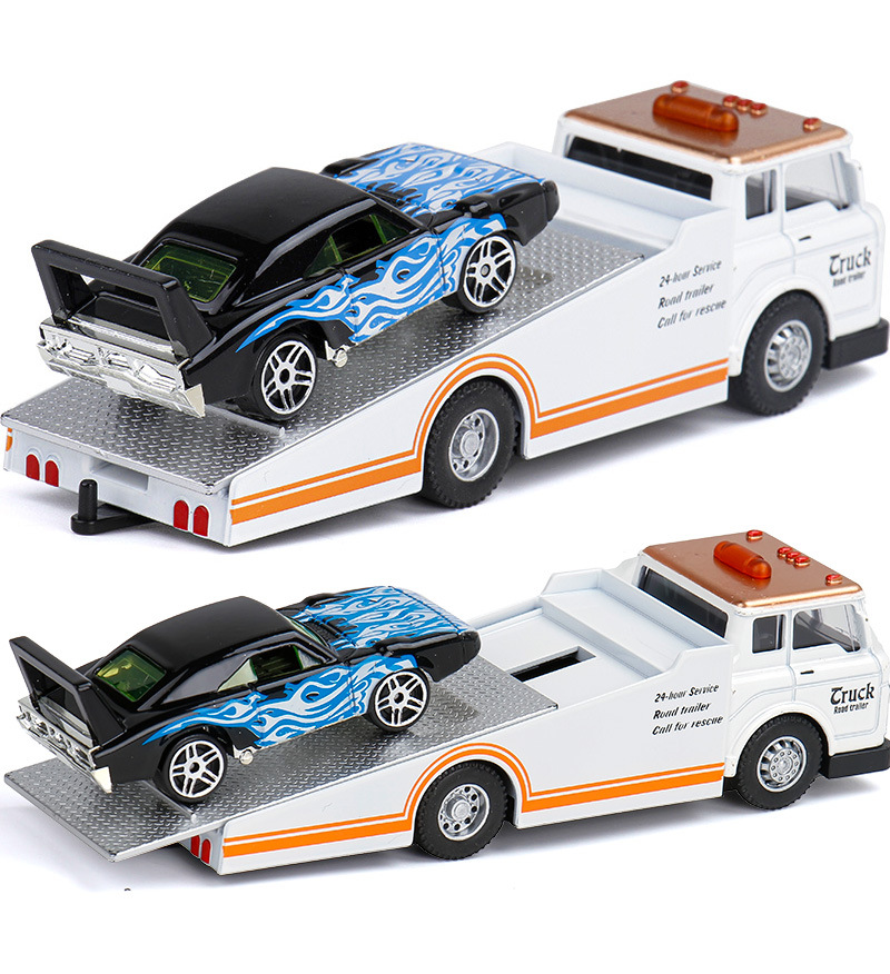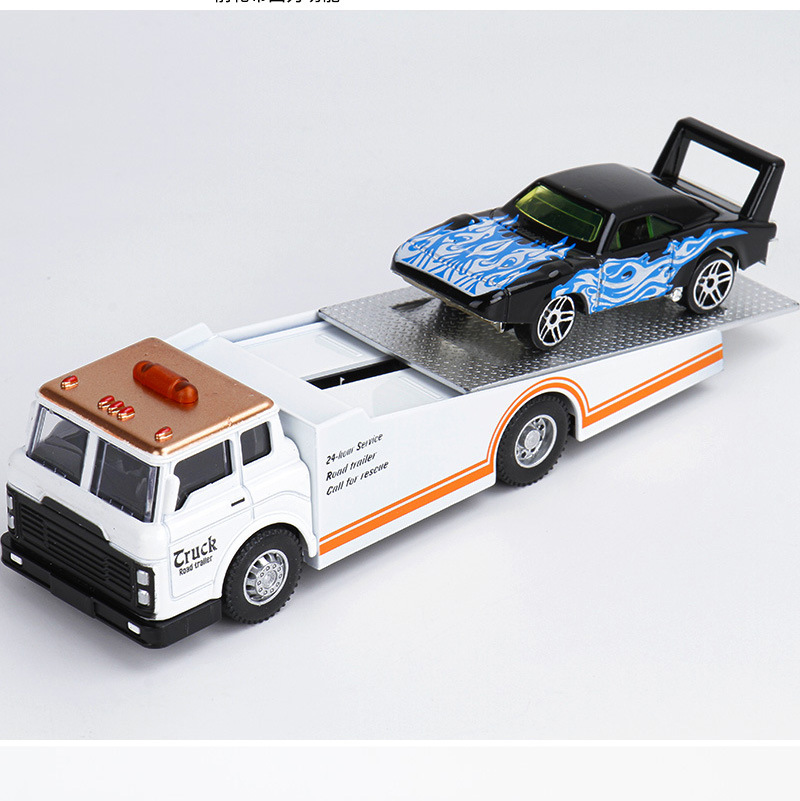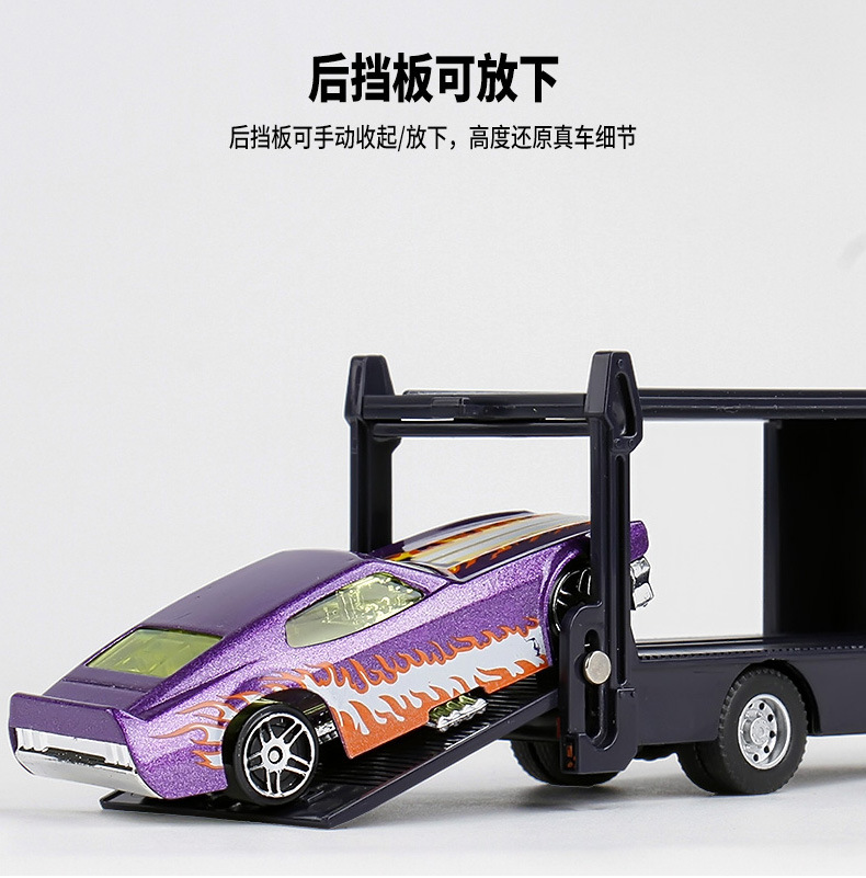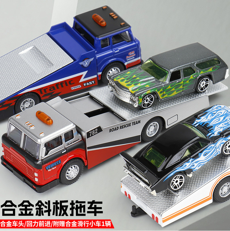咔尔1:64合金平板拖车清障车斜坡运输工程车双层卡车货柜车玩具车