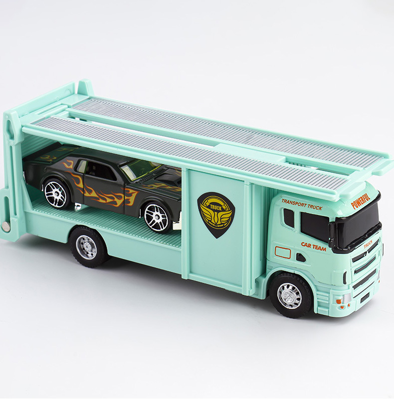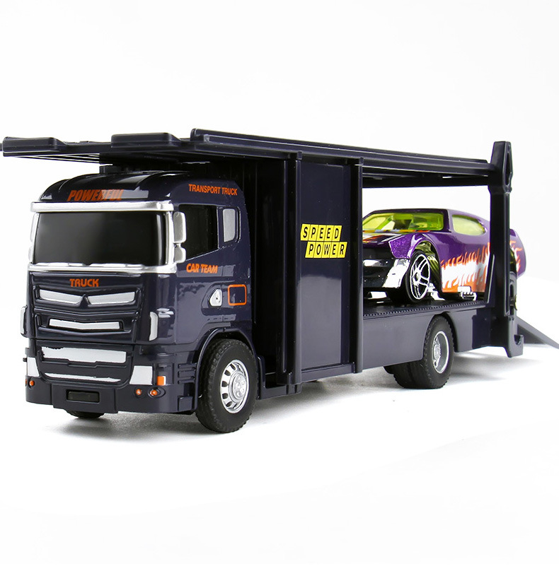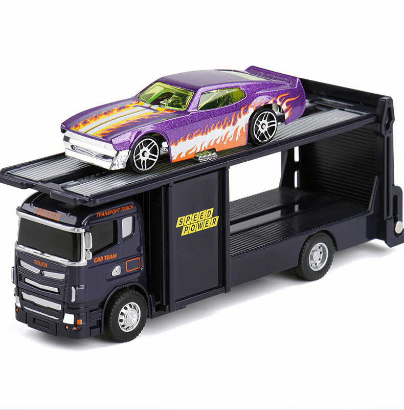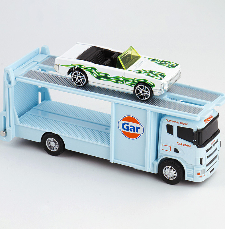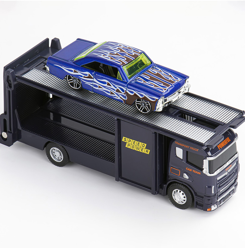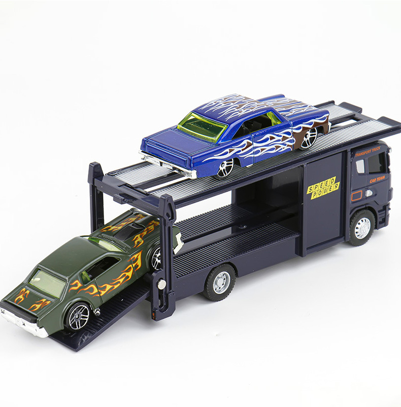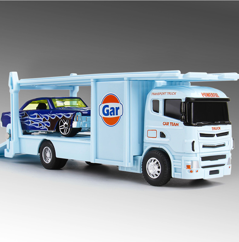 咔尔1:64合金平板拖车清障车斜坡运输工程车双层卡车货柜车玩具车