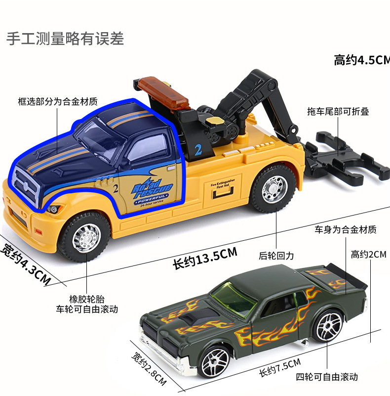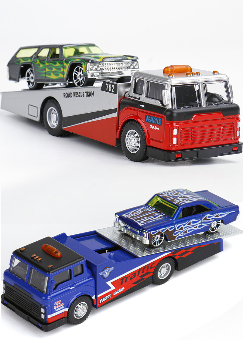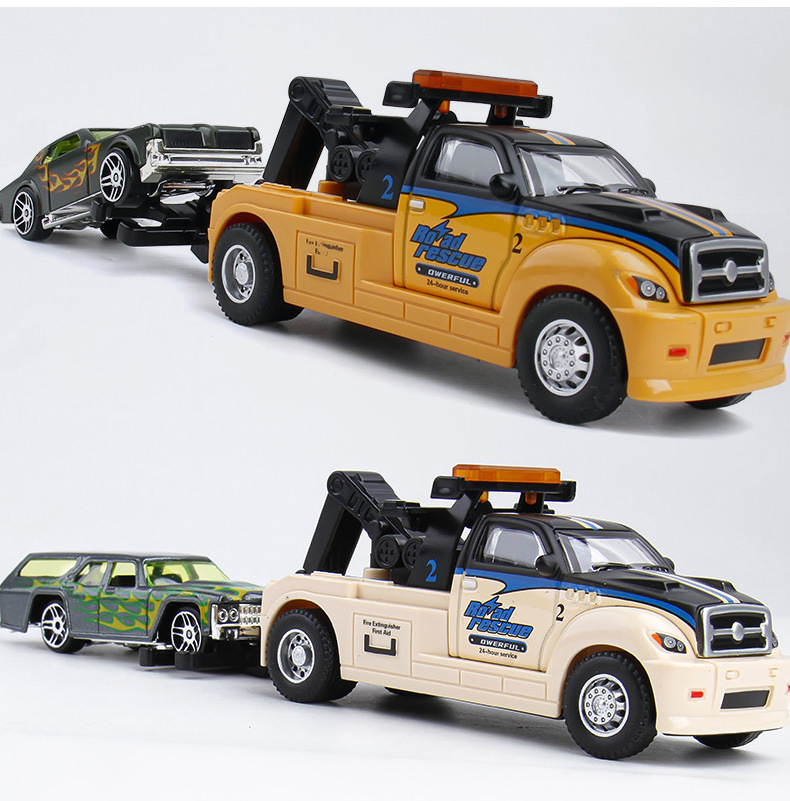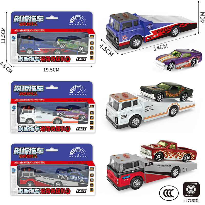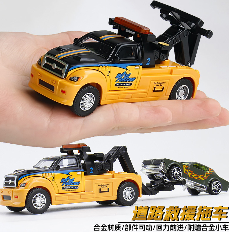 Kaer 502-2 箱入りロードレスキューチームトレーラー 1/64 シミュレーション子供用プルバック合金車モデル男の子卸売