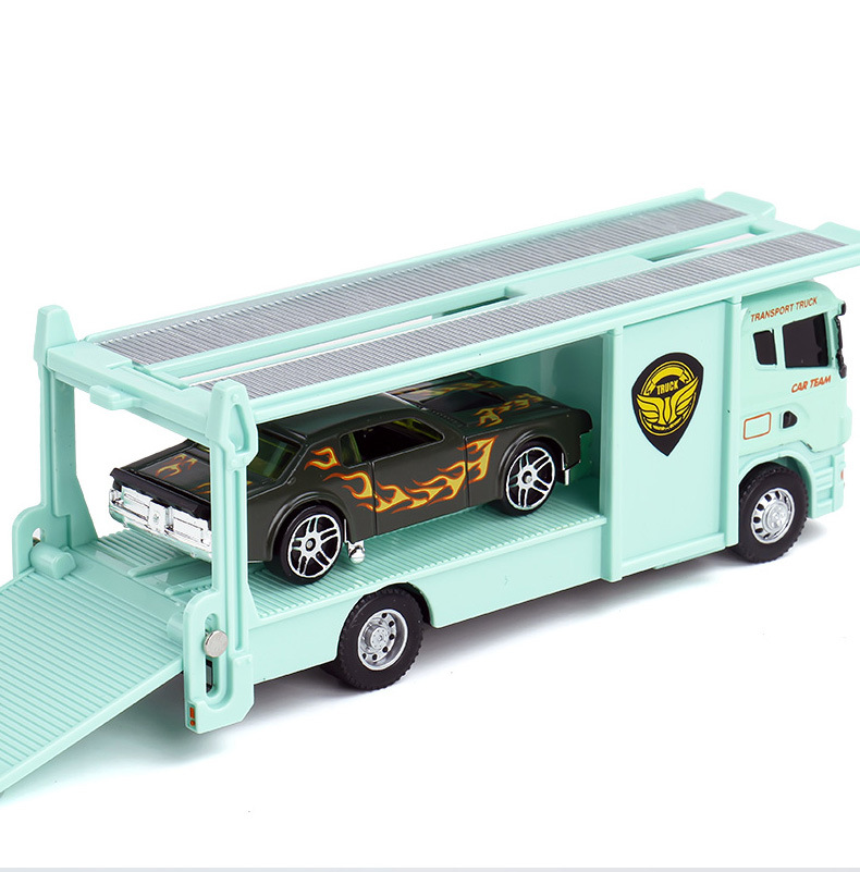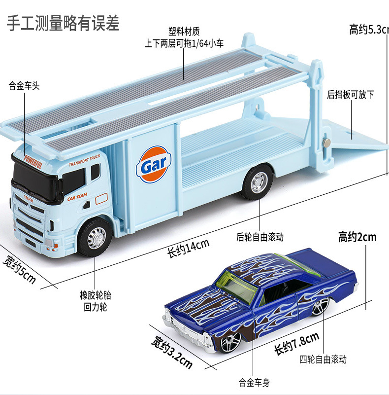 カイル1:64合金子供玩具平板トレーラーセット工事車二重トラック貨物コンテナ車ギフトボックス