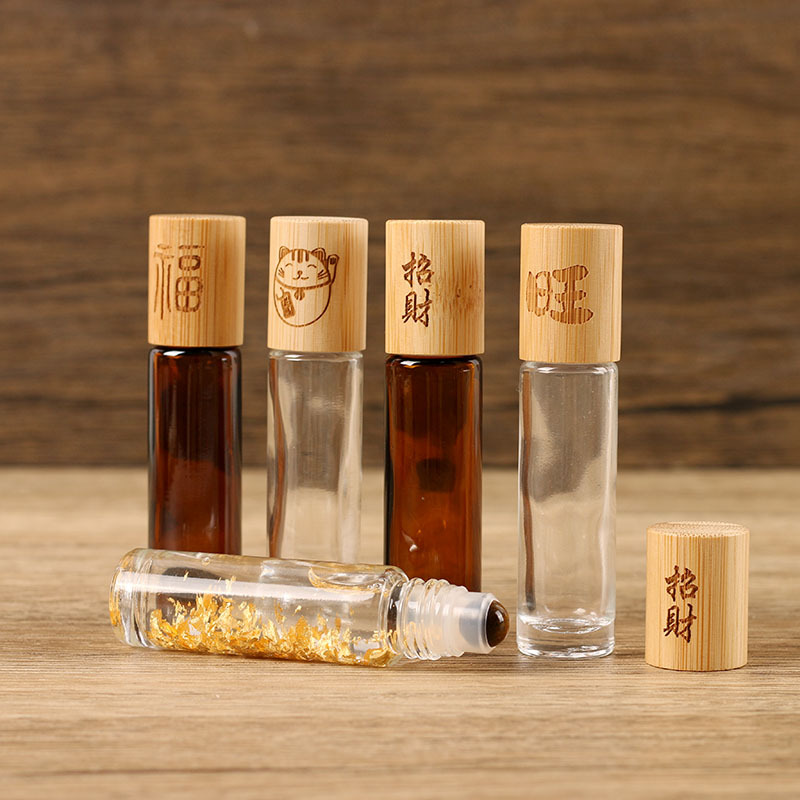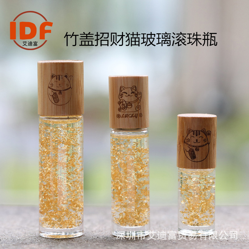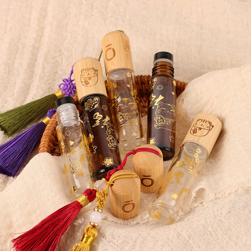 卸売り10ml茶色のボール瓶箔押し招き猫精油瓶竹蓋透明ビーズ瓶金持ち油分注