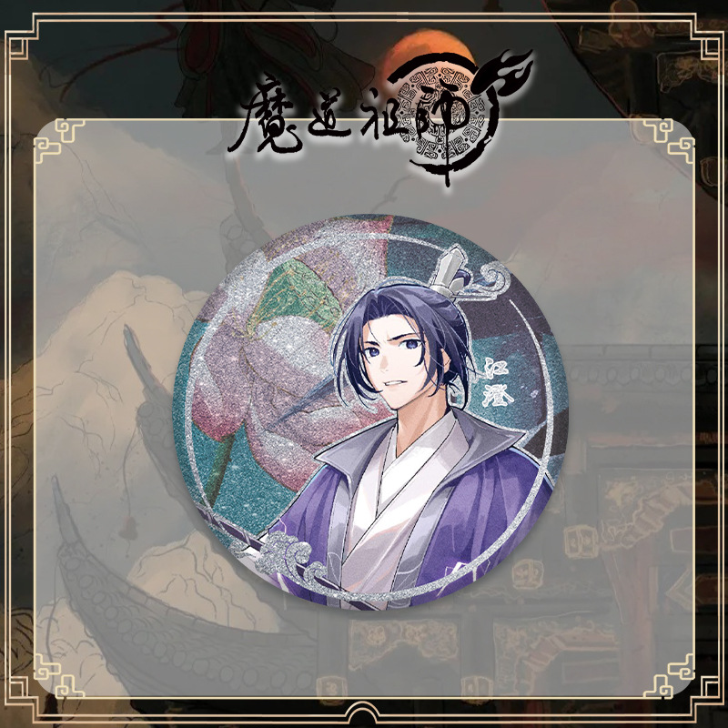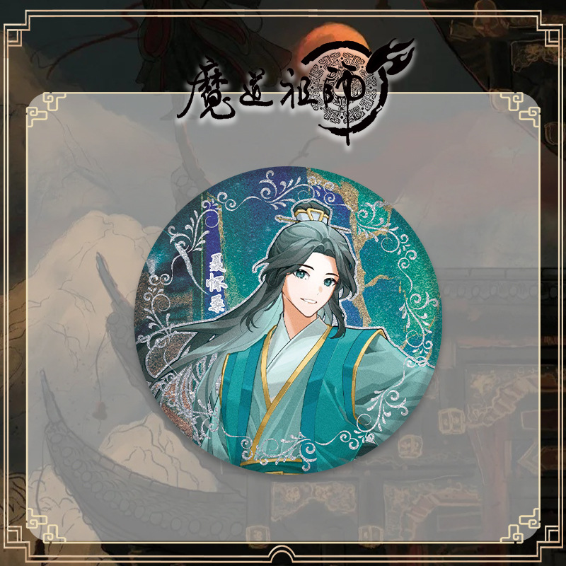 魔道祖师吧唧盲银葱双闪镭射徽章卡贴盲抽75mm马口铁谷子批发