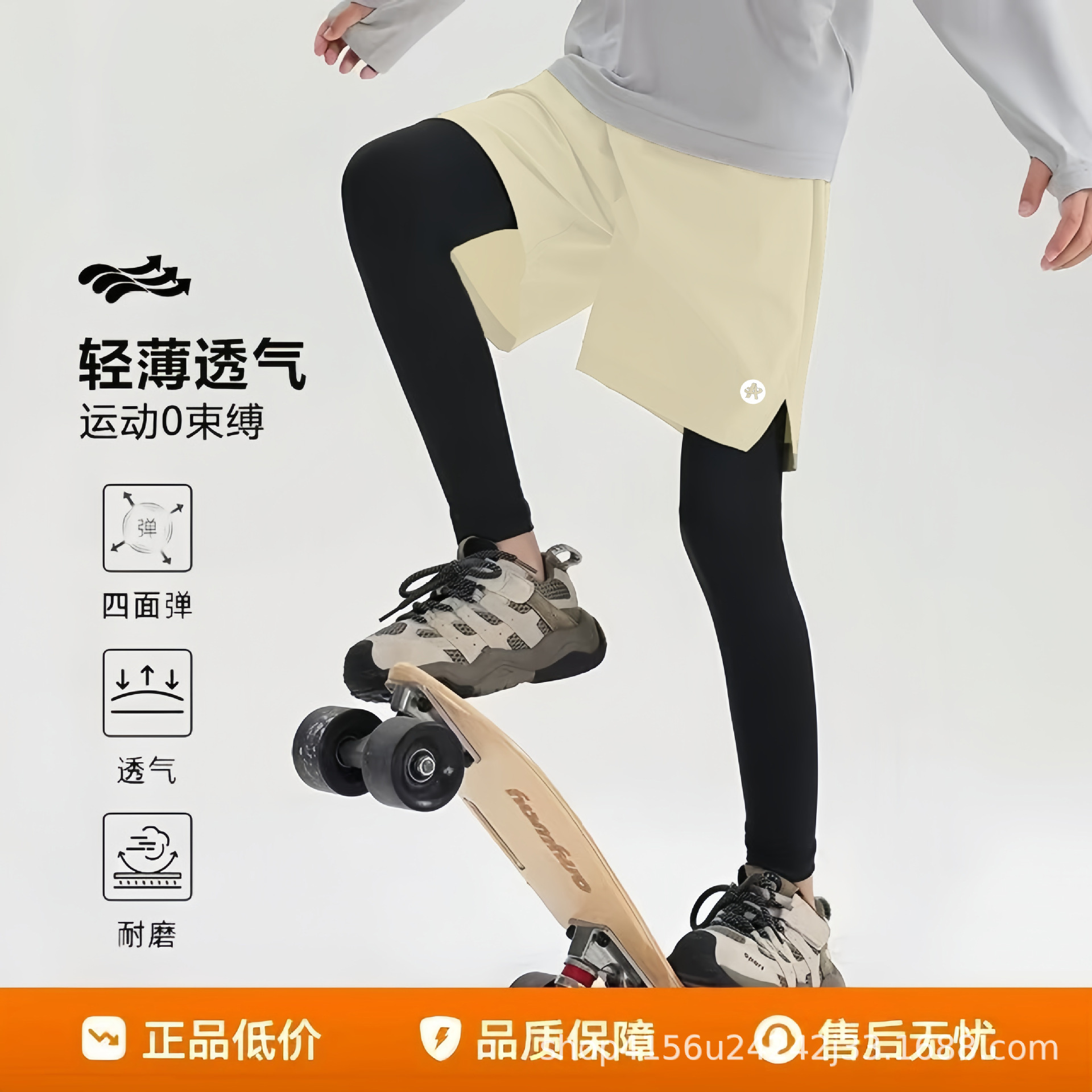 儿童假两件速干裤2025春秋款冰感运动裤男女童户外跑步训练速干裤