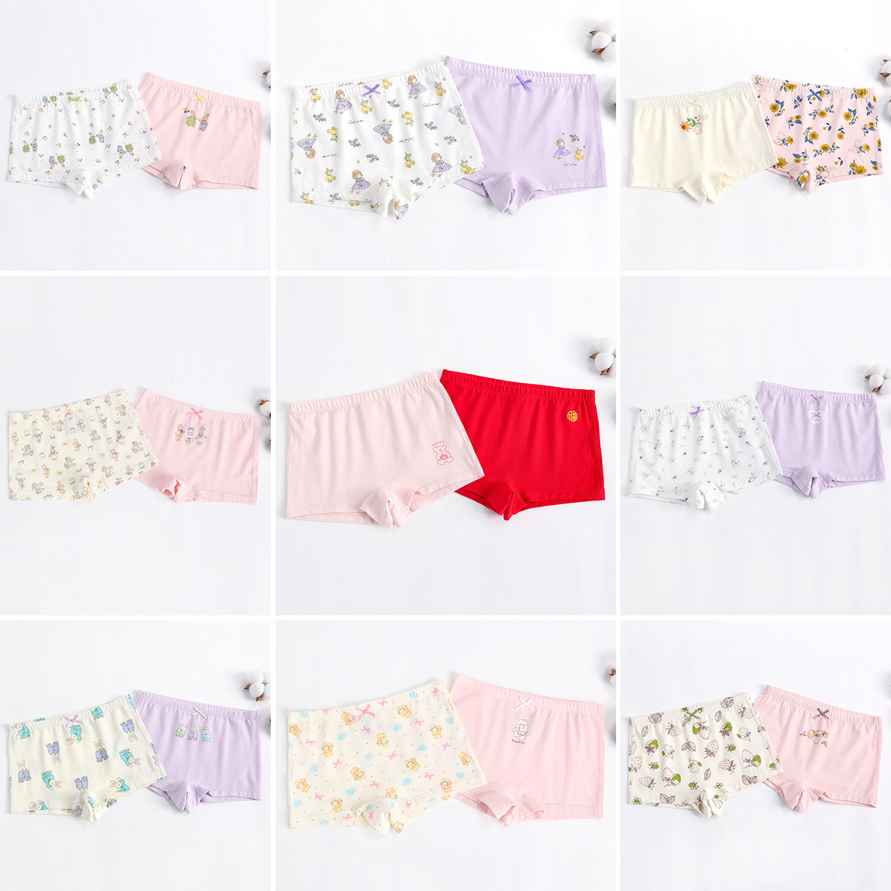 ランタンモーデールの女の子の下着2025の新型の中で大きい子供の7a種類の抗菌の子供の女の子の通気性の四角のショートパンツ