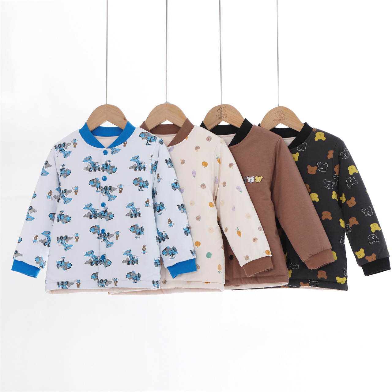 制服の神器の子供は小さい綿入れの上着を厚くします。
