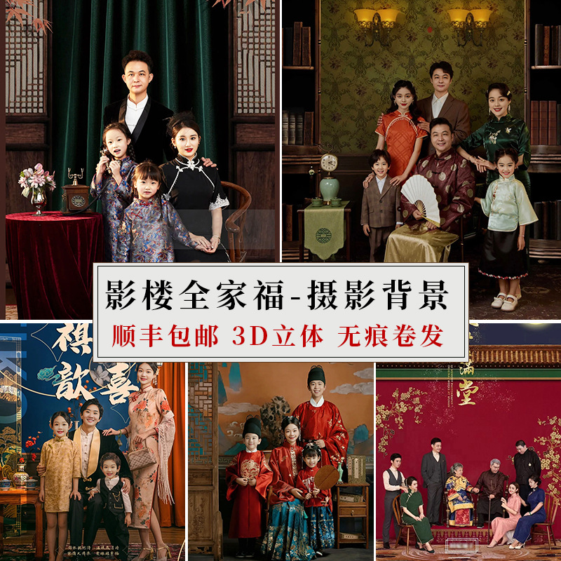 家族の福の撮影の背景の布は撮影して写真を撮ります。