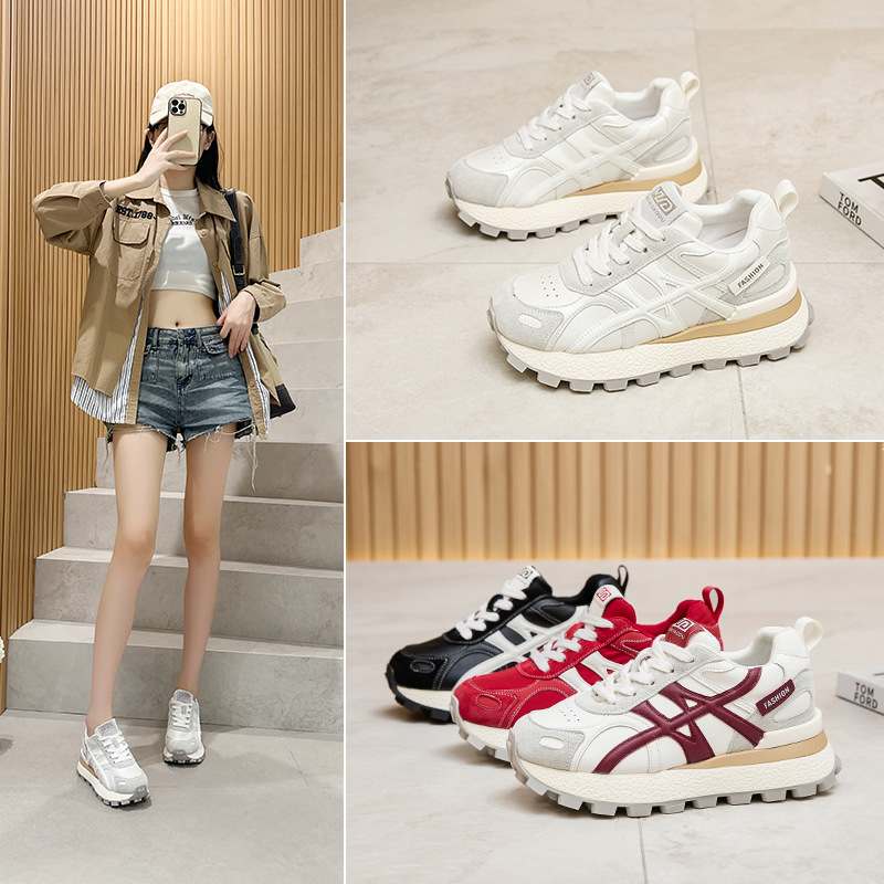 2024春の新型の白い靴の女子学生の運動靴のネットの赤いレジャーの女性の靴は厚い底の中の本革の徳訓の靴に乗ります。