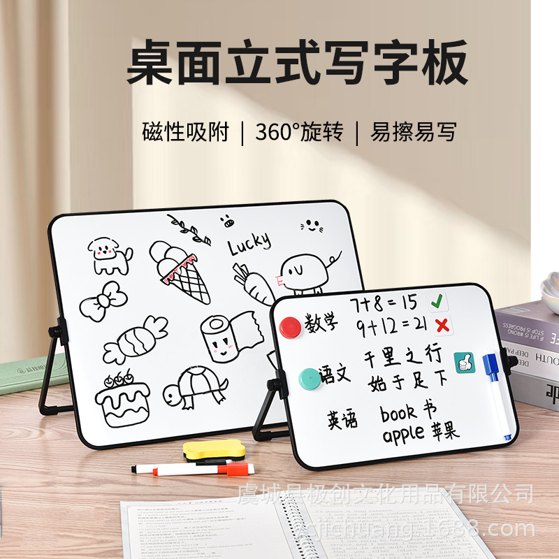 両面金属ホワイトボードオフィスホームデスクトップノートボード子供の教育メモボード 360 度フリップ小さなホワイトボード