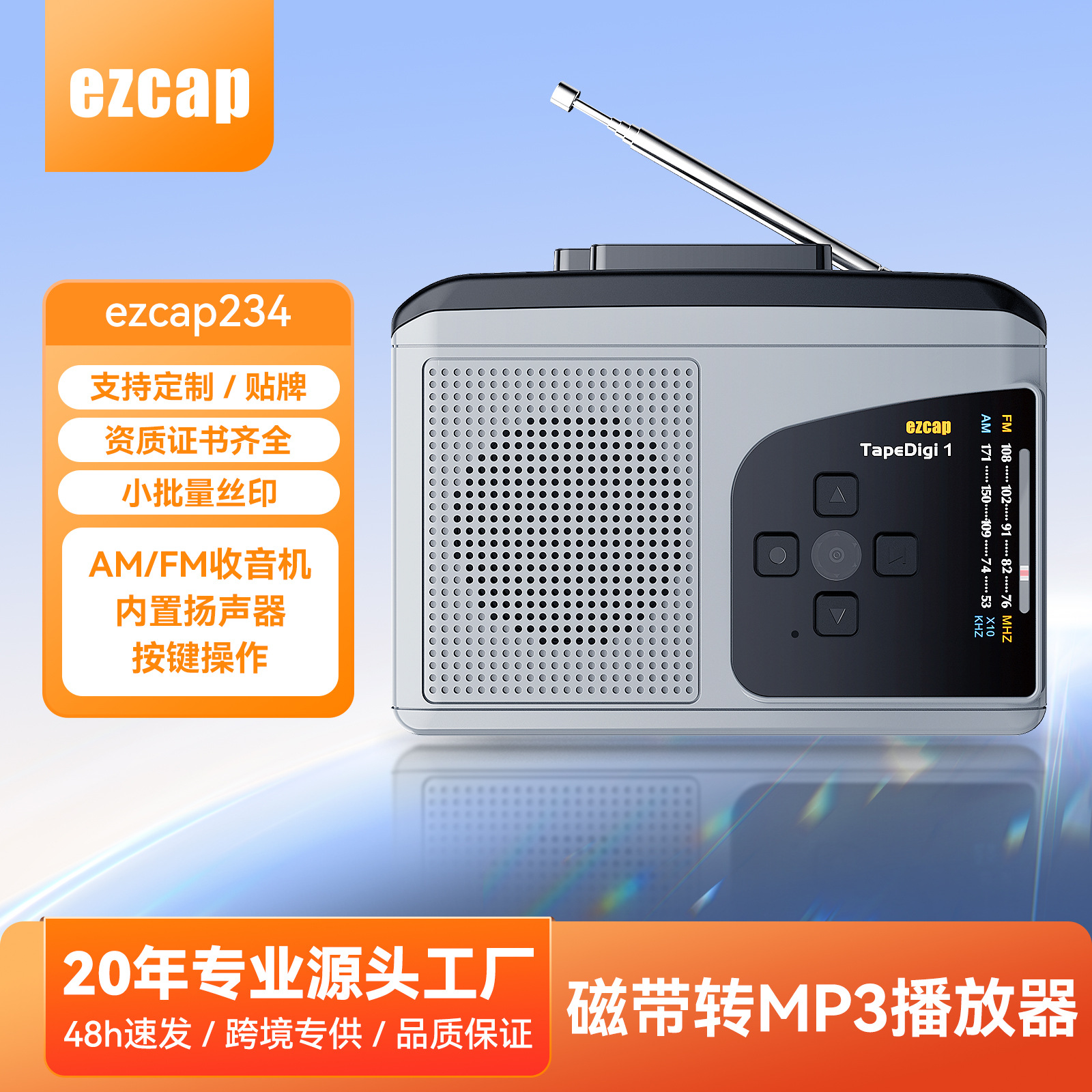 - 用户界面: 磁带播放及相关按键, 磁带/FM/AM切换开关, 音量调节旋钮,工作指示灯-快闪蓝牙搜索配对,常亮蓝牙配对成功,慢闪蓝牙播放。