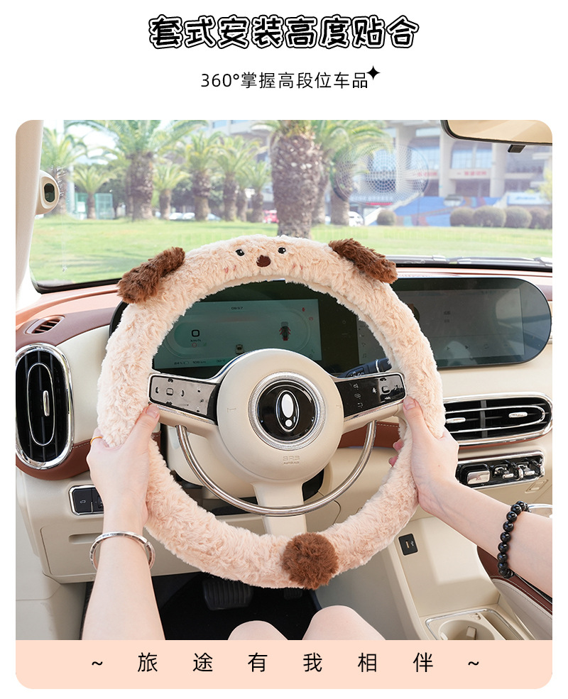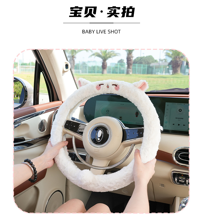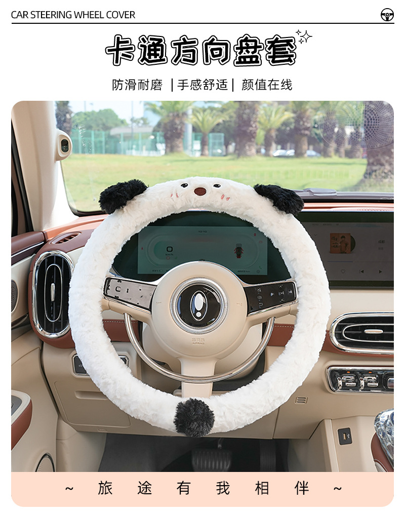 車のハンドルカバー冬のかわいい漫画車用保温滑り止めカバー創意ハンドルカバー四季通用