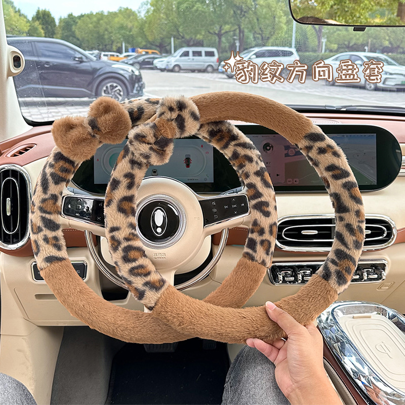 豹柄の車のハンドルカバー、冬用の暖かい滑り止め付き車のハンドルカバー、クロスボーダー車のハンドルカバー