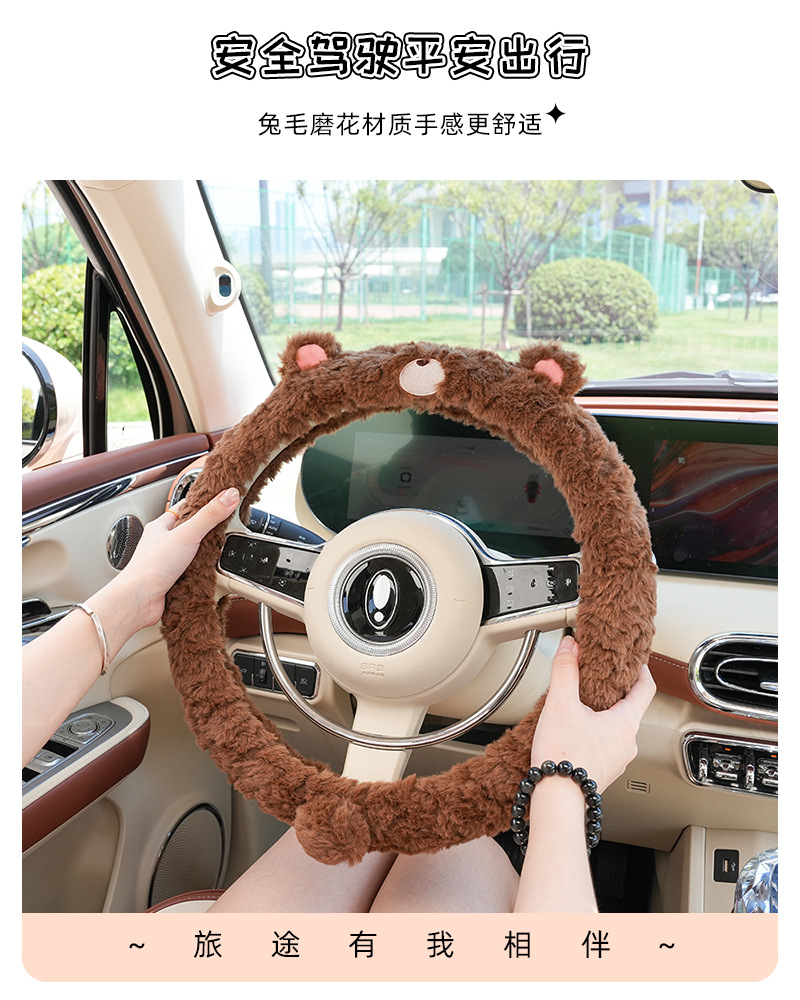 秋冬車のハンドルカバーぬいぐるみ保温防凍車内用ハンドルカバーかわいい車のハンドルカバー