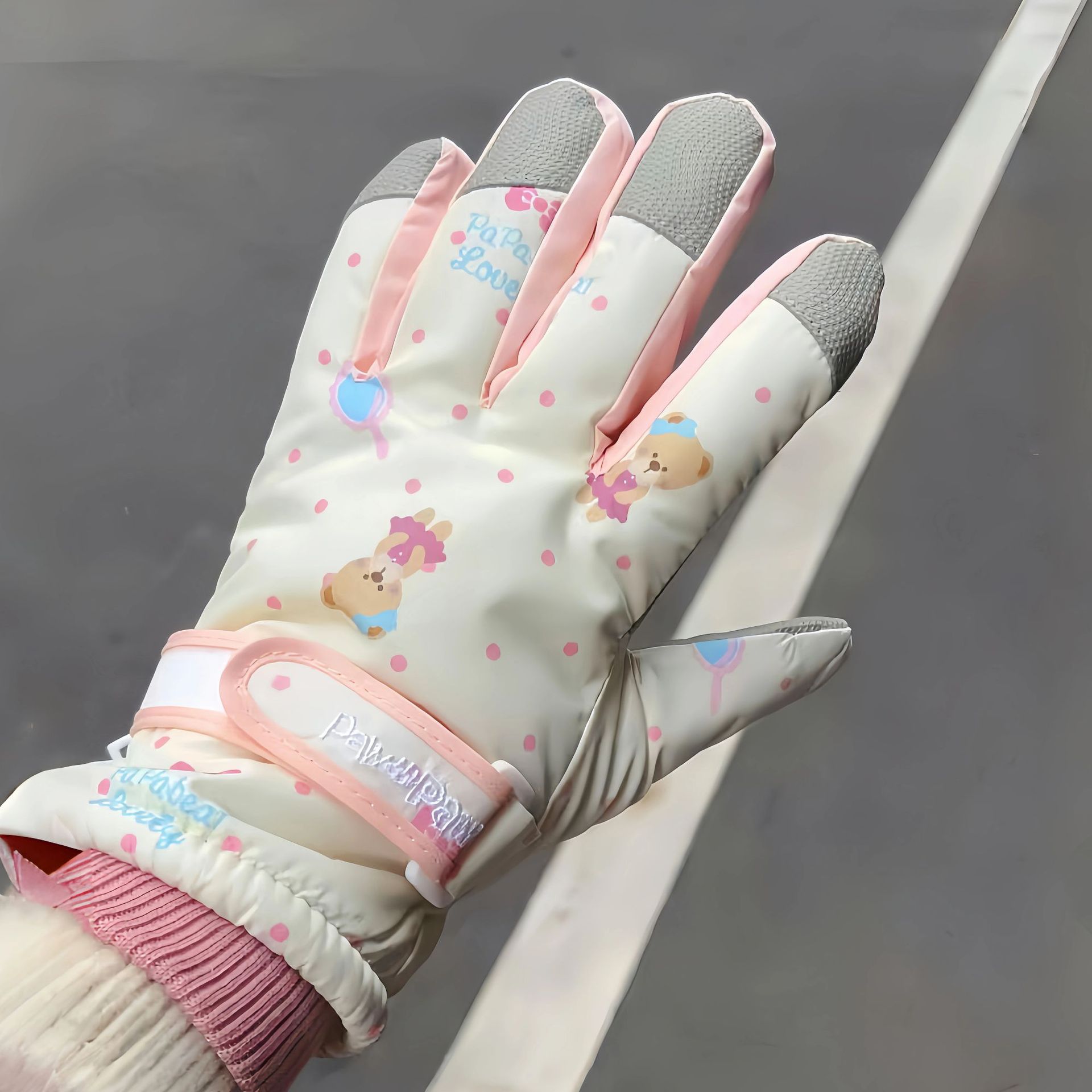 米色可爱小熊滑雪手套女冬季韩系保暖加绒加厚户外防风防寒骑车潮