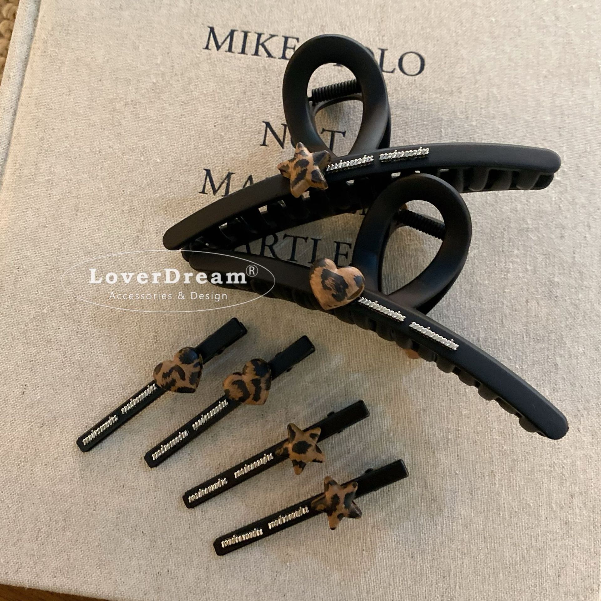 韓国の新型ヒョウ柄の愛の五芒星のアルファベットの黒い髪の挟みのファッションの高級なつかみのサメの魚の挟みの髪飾りの女性