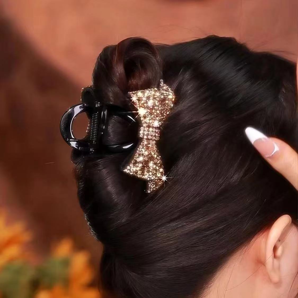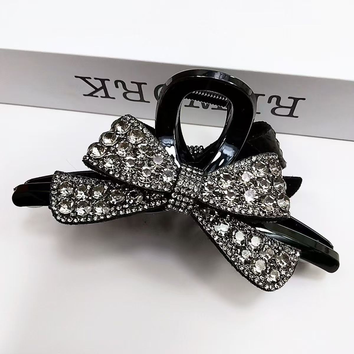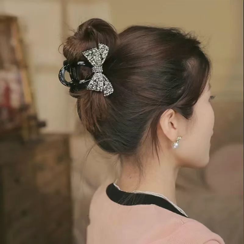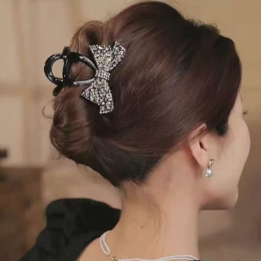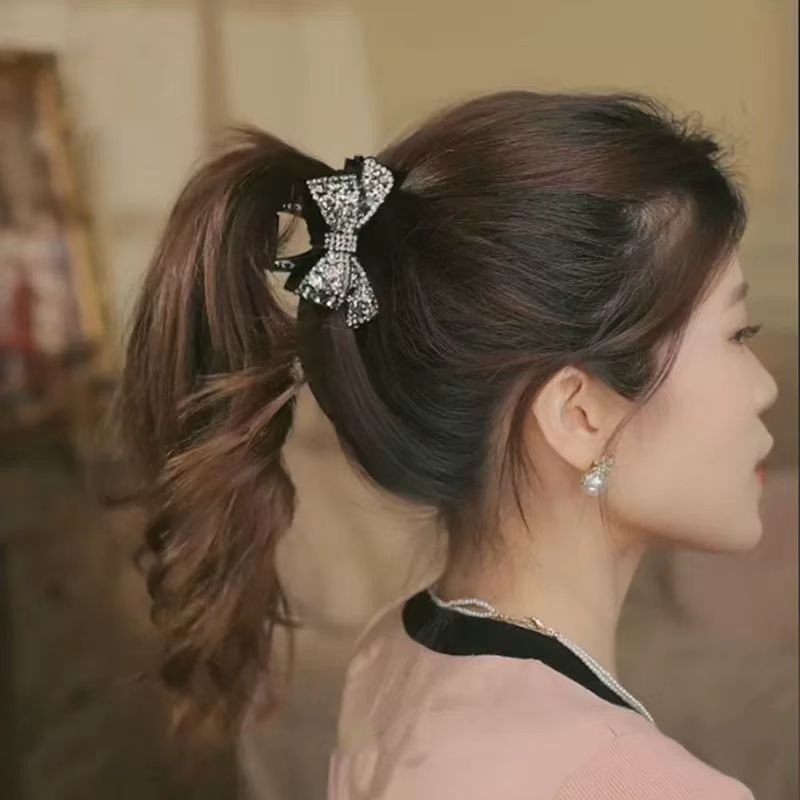 韩版高端满钻蝴蝶结大号抓夹女名暖优雅后脑勺盘发鲨鱼夹发夹发饰