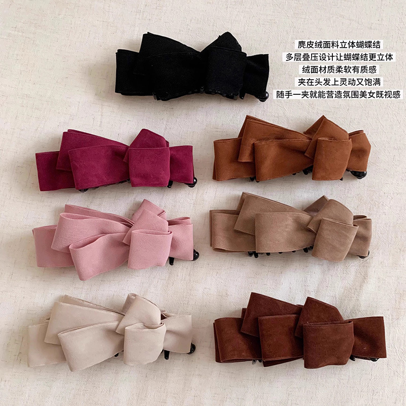 秋冬麂皮绒面多层蝴蝶结香蕉夹子韩系气质扎马尾盘发竖夹扭扭夹女