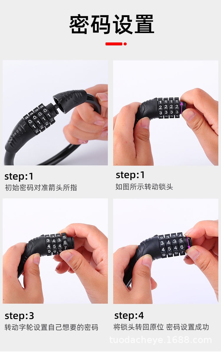 【源工場】自転車四位暗号ロックオートバイ防水盗難防止ワイヤーロープ電気自動車ワイヤーロック