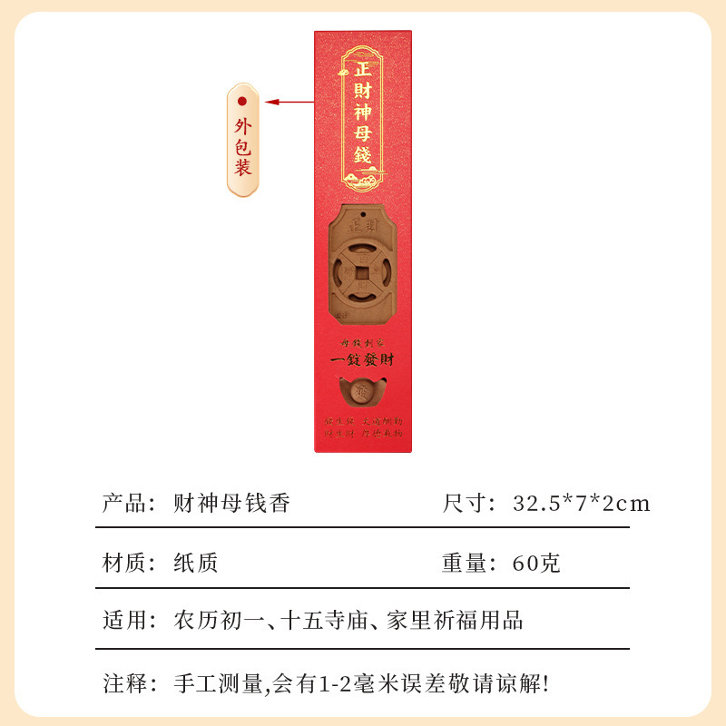 卸売 財神銭母香牌 燃焼可能 祈願用 財神香