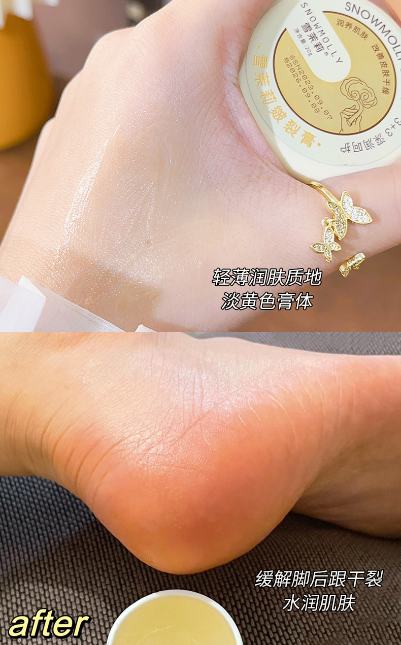 雪茉莉裂膏油のかかとが乾いていて、ざらざらしています。