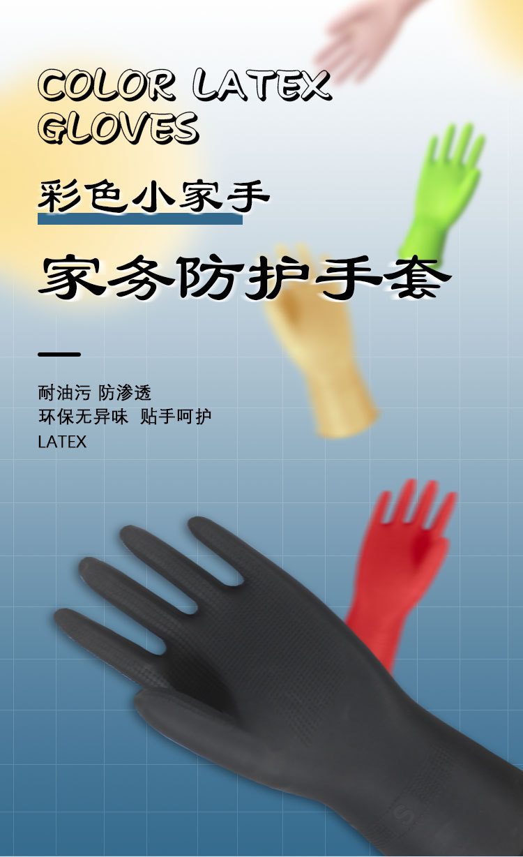 OEM/ODM黒ゴム手袋ラテックス薄い耐久性洗濯キッチン服ペット入浴家事清潔