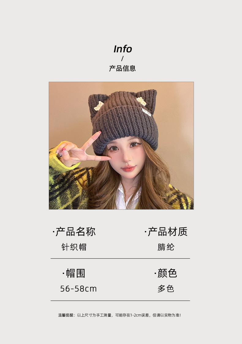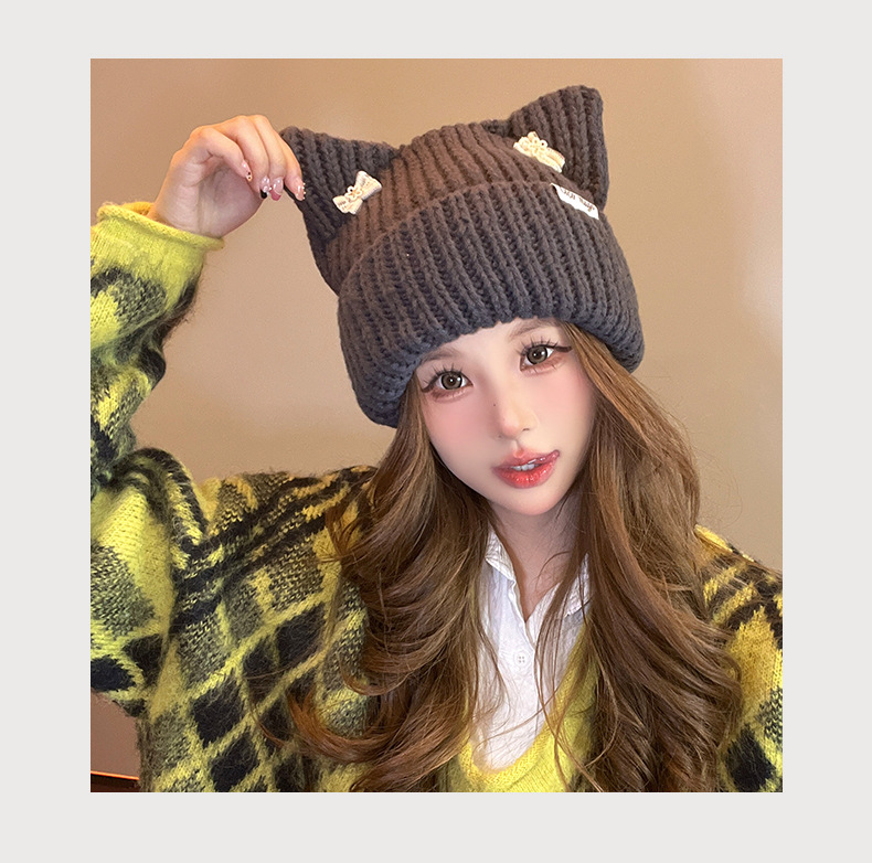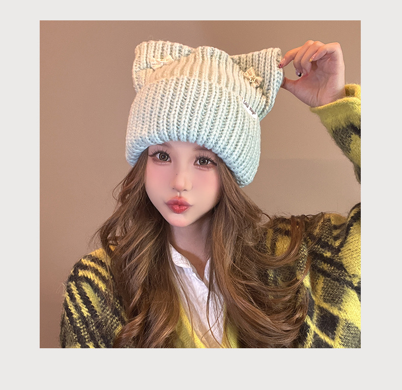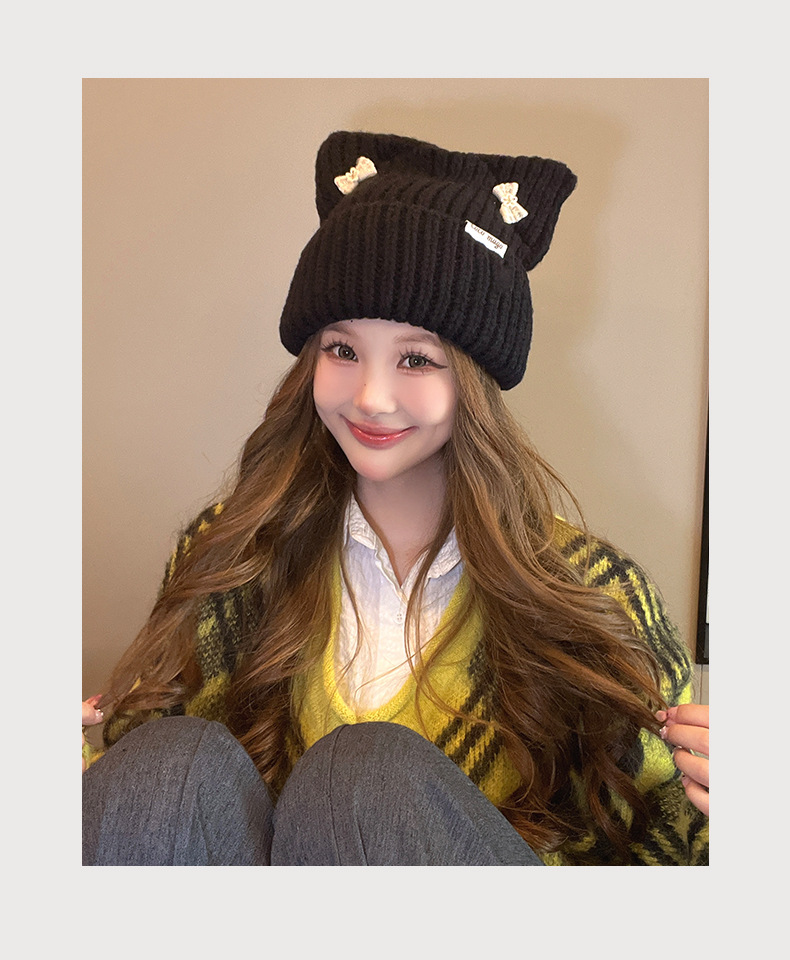 韓国の蝶結びの帽子の女性のかわいい猫の耳のニットの帽子の屋外の保温の百合の毛糸の帽子の学生は頭の冷たい帽子をかぶせます。