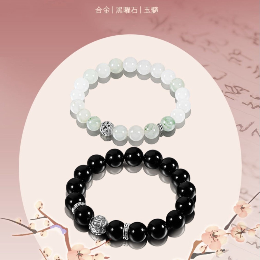 店主は清冷系古風カップルのブレスレットを勧めています。