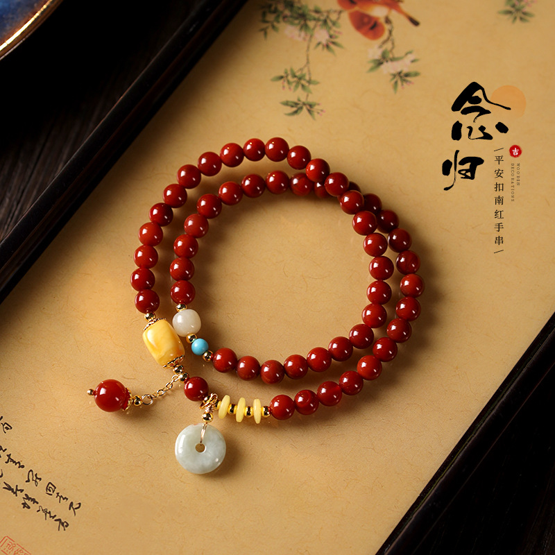 レトロな南の赤い瑪瑙の双輪の手串の翡翠の平安はペンダントの新しい中国式の国風の蜜ろうの百合のブレスレットの卸売りを掛けます。