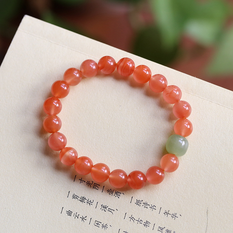 新品 天然四川産南紅瑪瑙ブレスレット シングルリング ホータン翡翠付き レディースブレスレット オリジナル