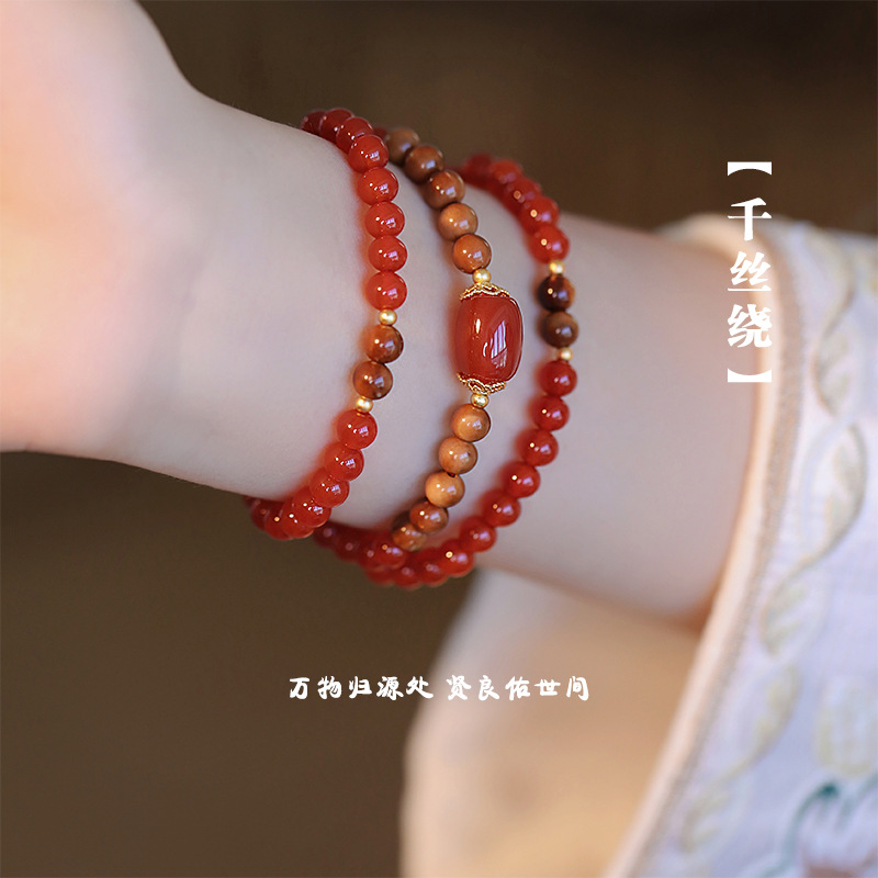 【千糸巻き】天然玉の赤い瑪瑙のブレスレットの女性の新しい中国式の回転の玉の多くの輪の手串の親友の贈り物