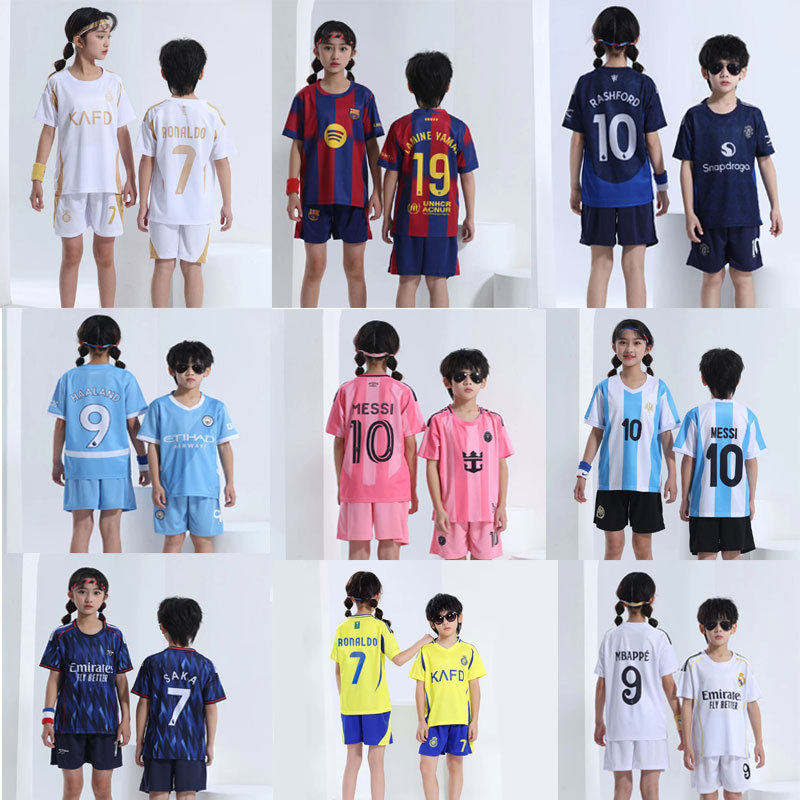 2425新シーズン児童サッカー服セット男女児童運動会のユニホーム共同購入印字番号訓練ユニホーム