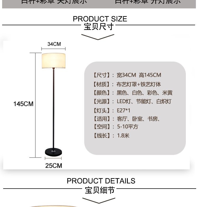 モダンでシンプルな寝室用スタンドランプ、雰囲気のあるインスタイルのリビングルーム用ソファ横スタンドランプ 138L