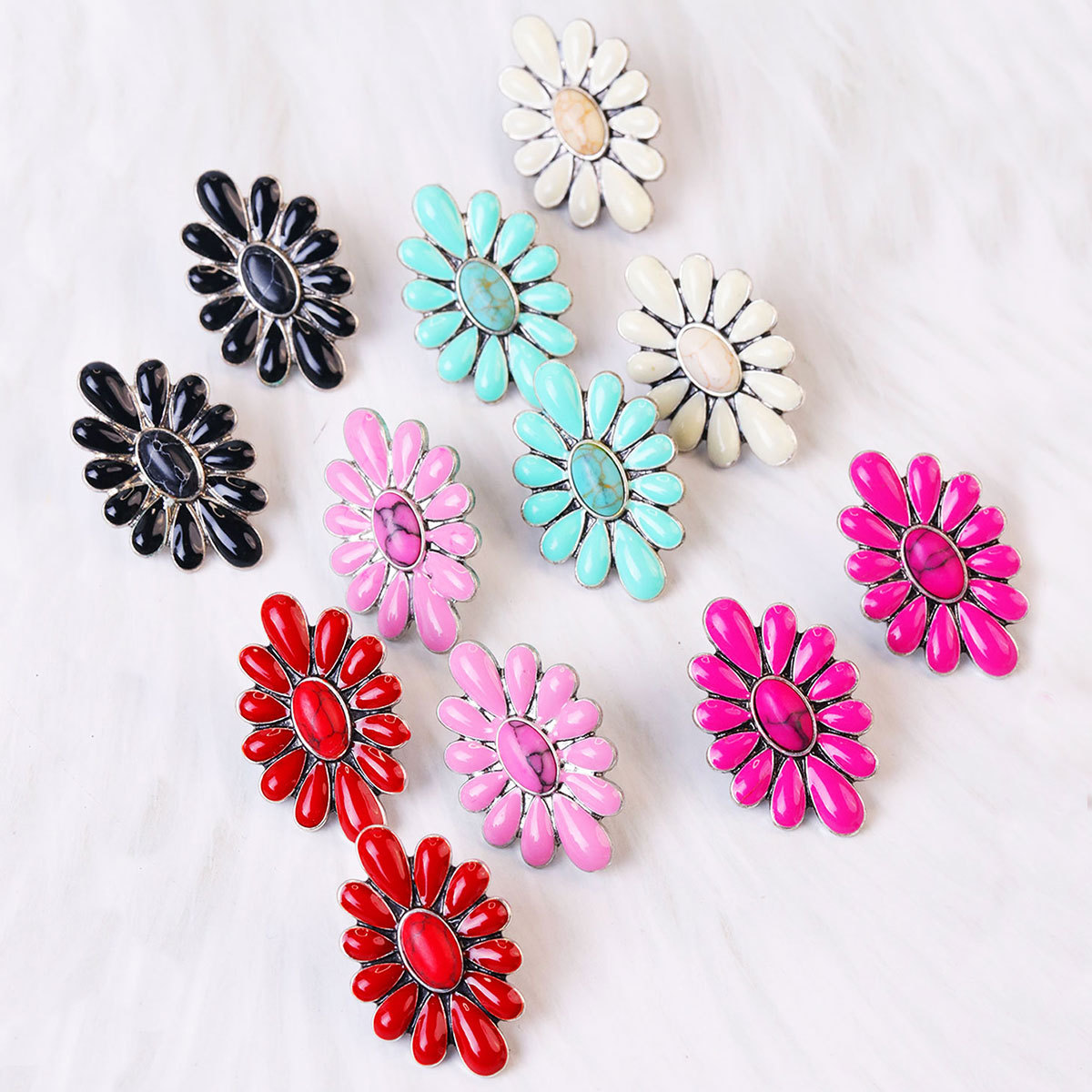 欧米のファッション新型合金松石画油ピアス幾何学花卉誇張イヤリング個性創意耳飾り卸売り