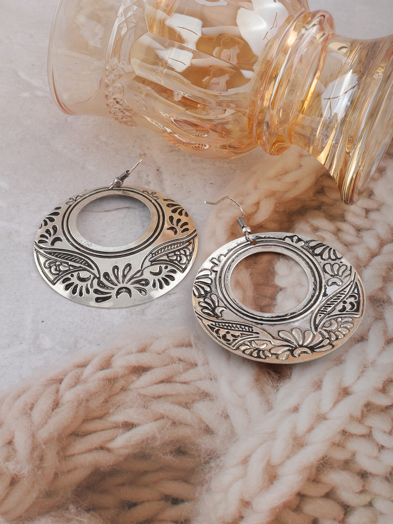 1ペアレトロ花柄ファッション幾何学図形楕円鉄片イヤリング