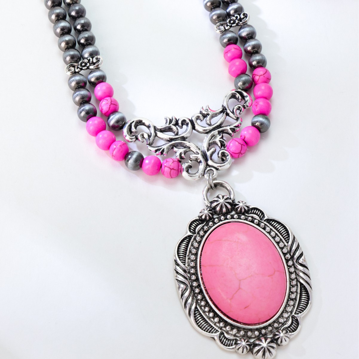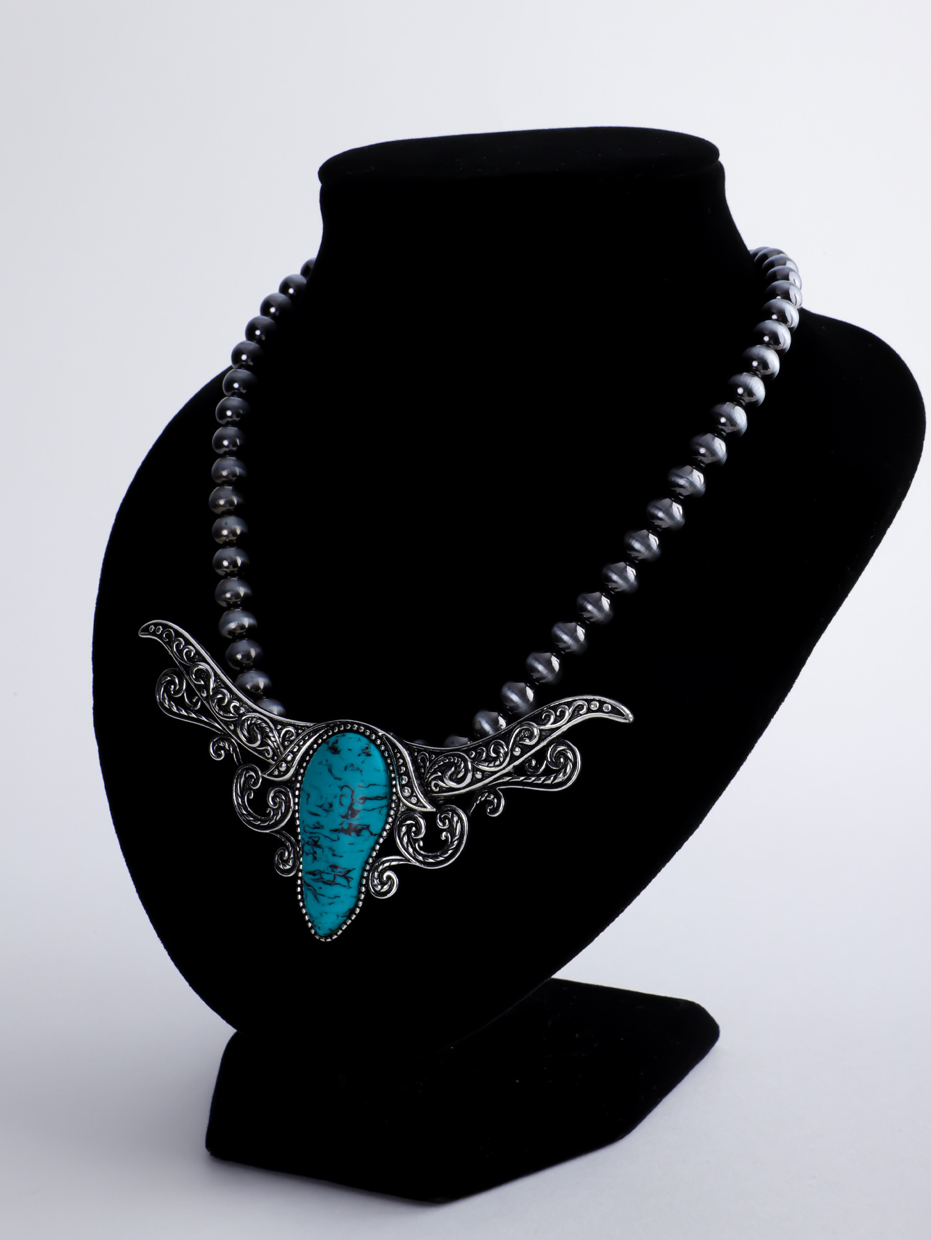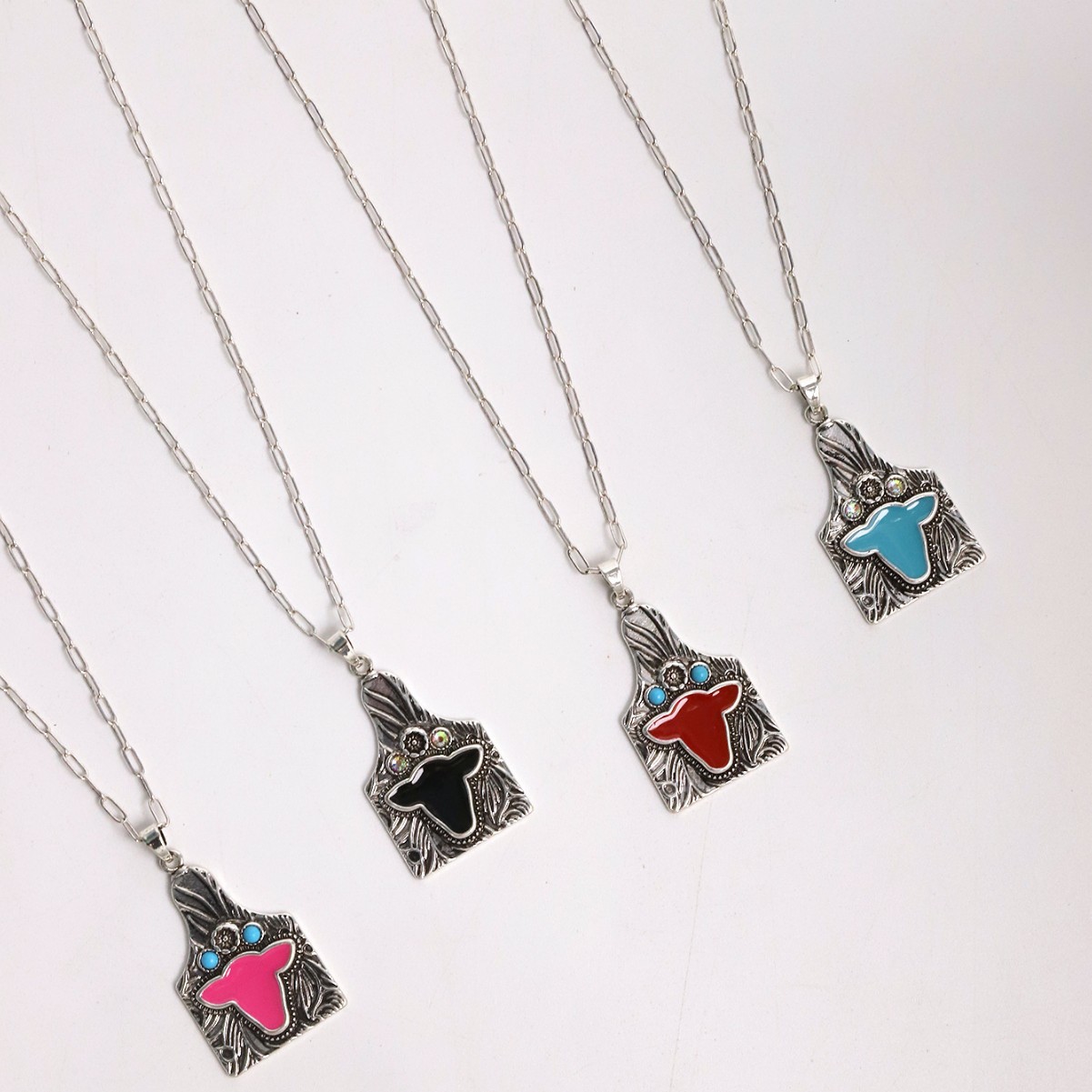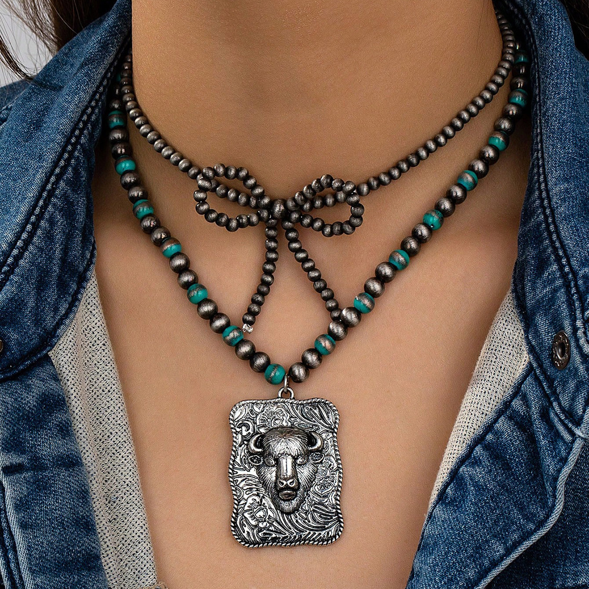 1 個ウエスタンカウボーイスタイル牛頭ピーチハートマルチ要素ターコイズ砂利シリーズペンダントネックレス女性用