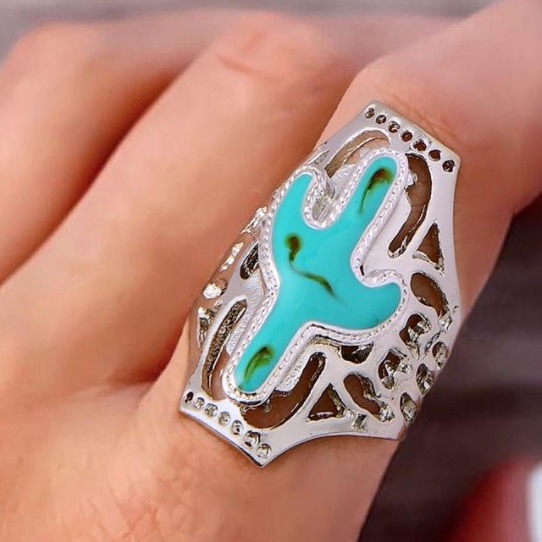 国境を越えた欧米独立駅の新型松石サボテン指輪サボテン緑松石抜き指輪