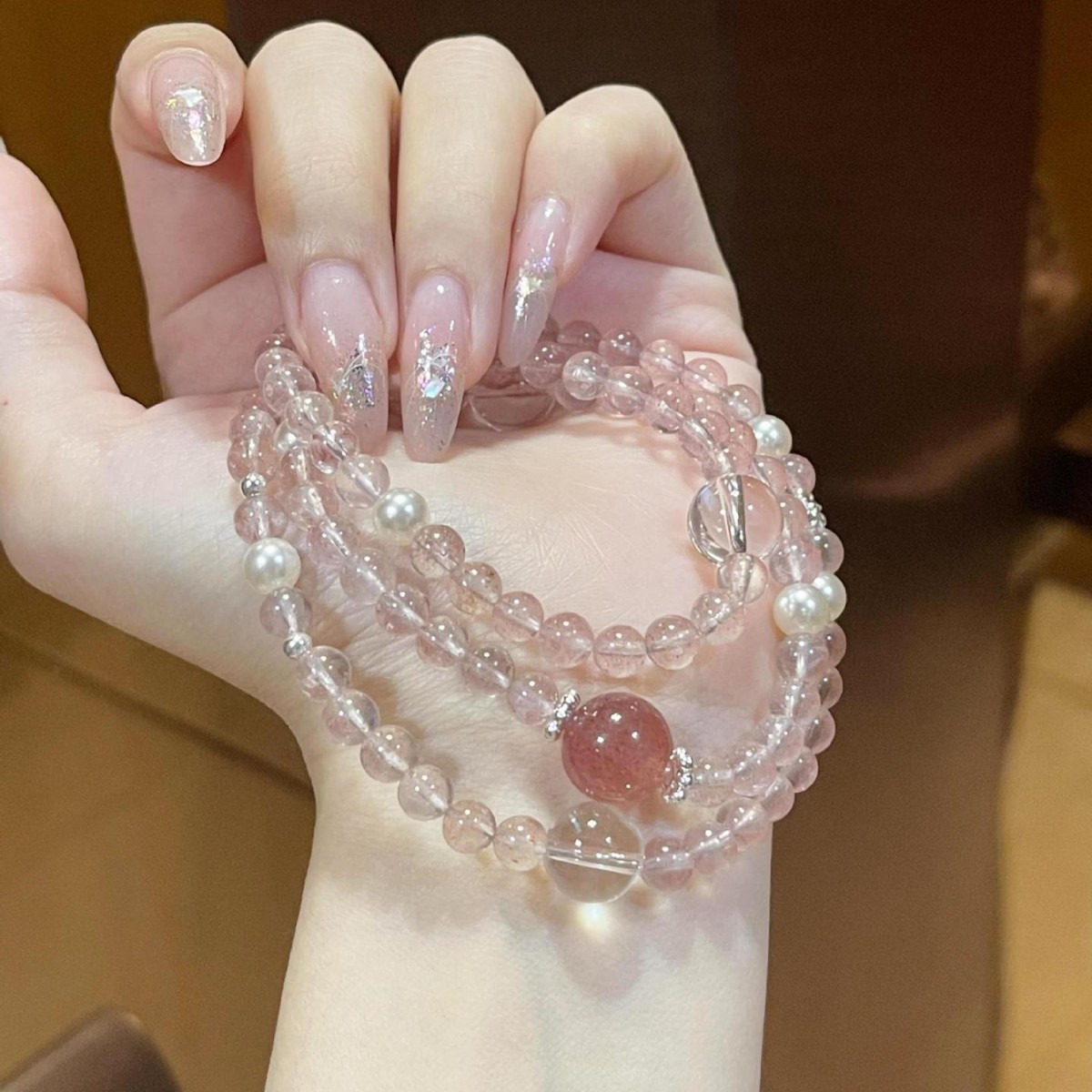 天然6mmいちご晶と白水晶真珠貝三輪鎖小衆デザイン女子モデル小清新手串