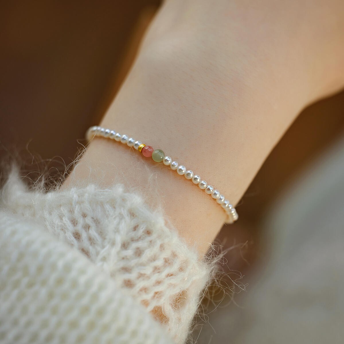 天然淡水真珠ブレスレット新中国式南紅碧玉百合手串女2025新型軽贅沢ファッション