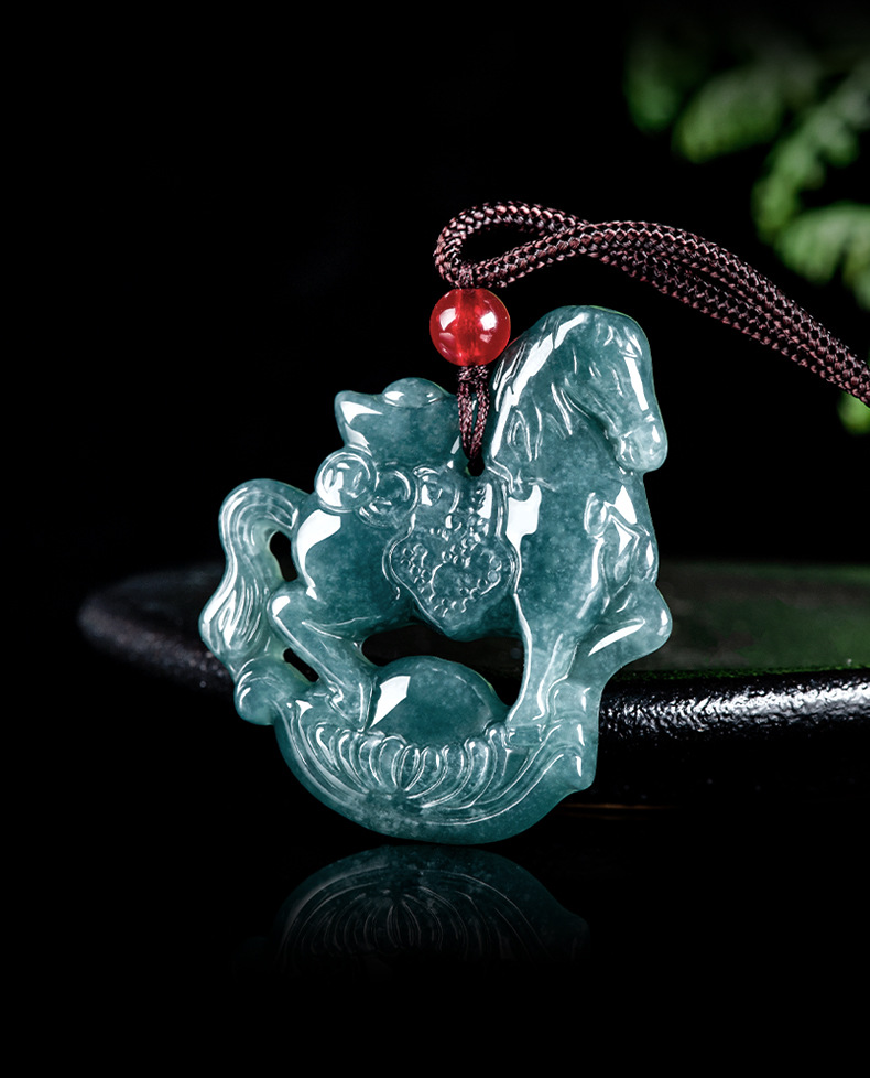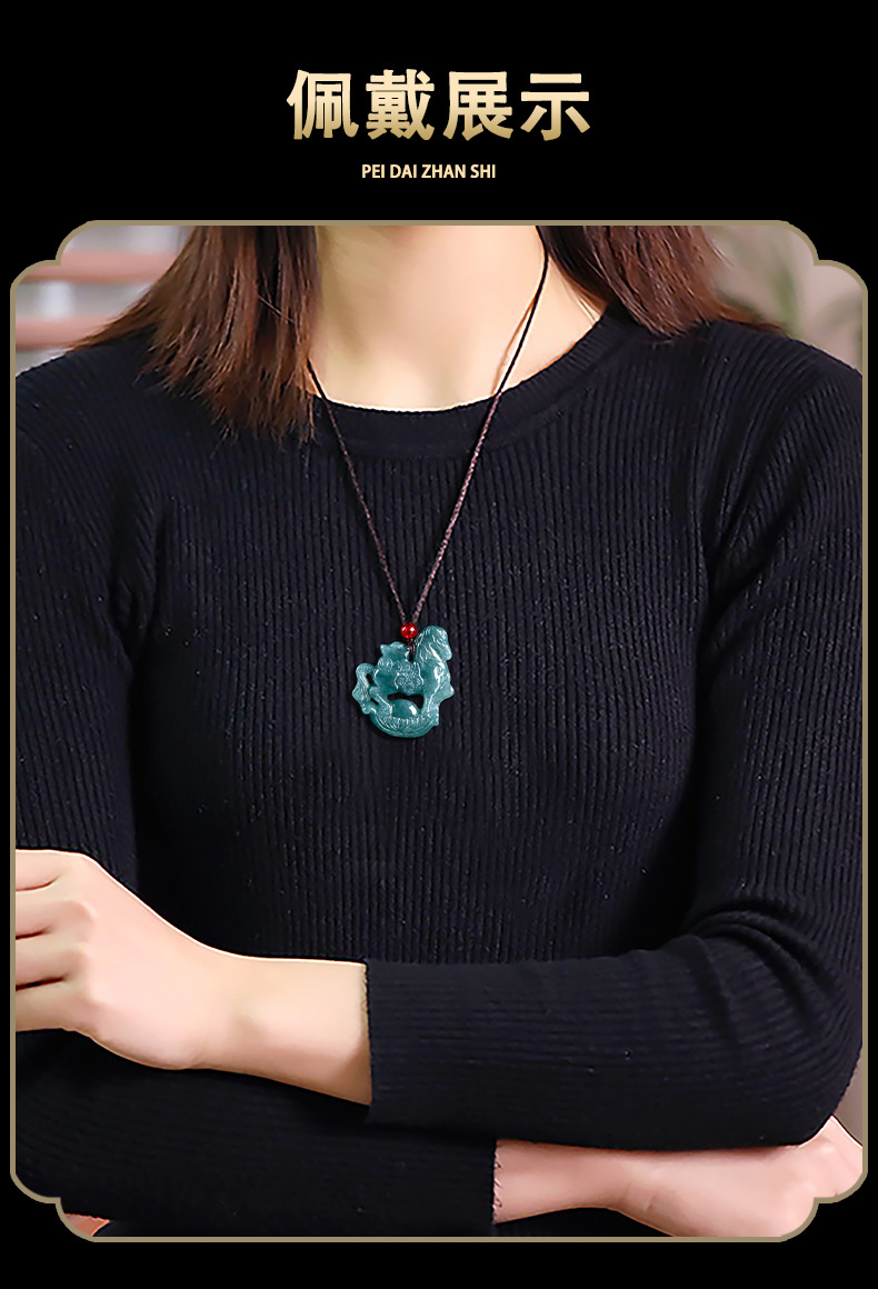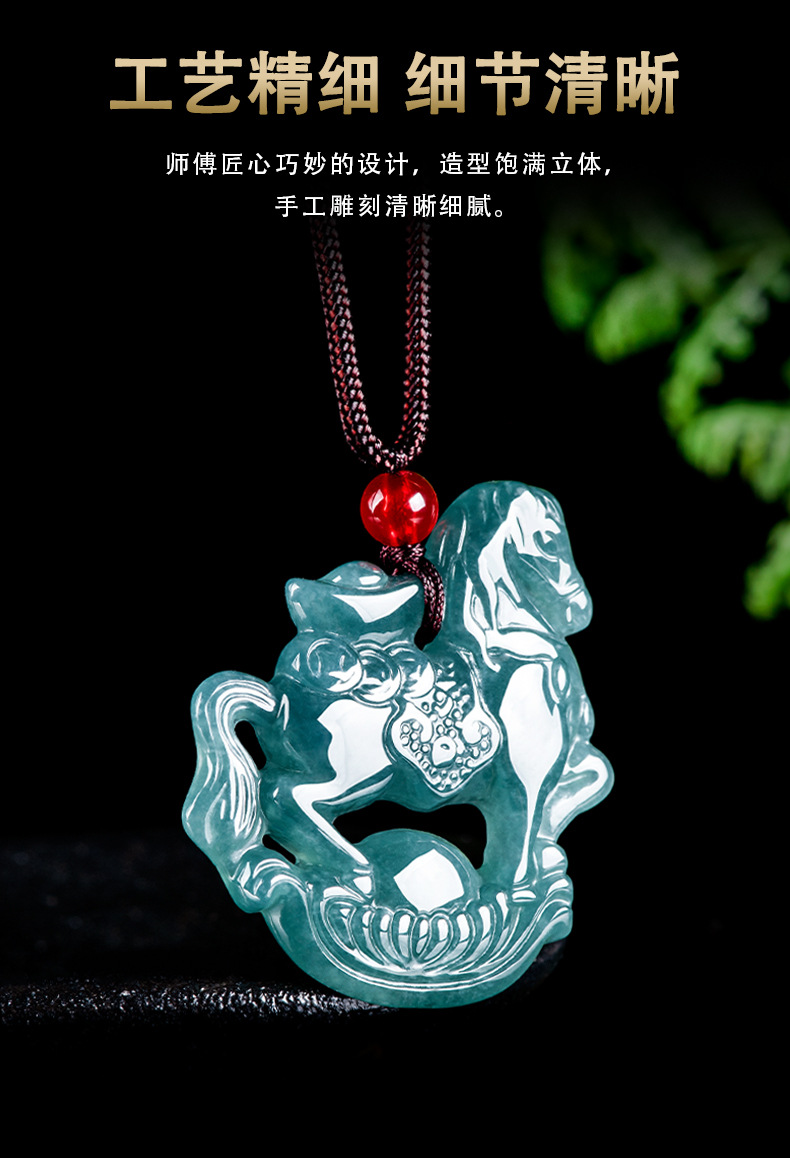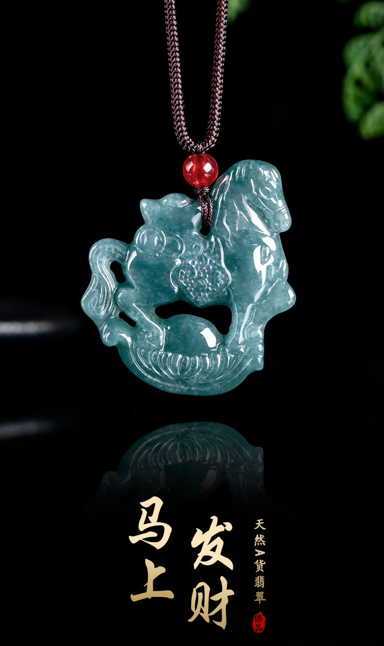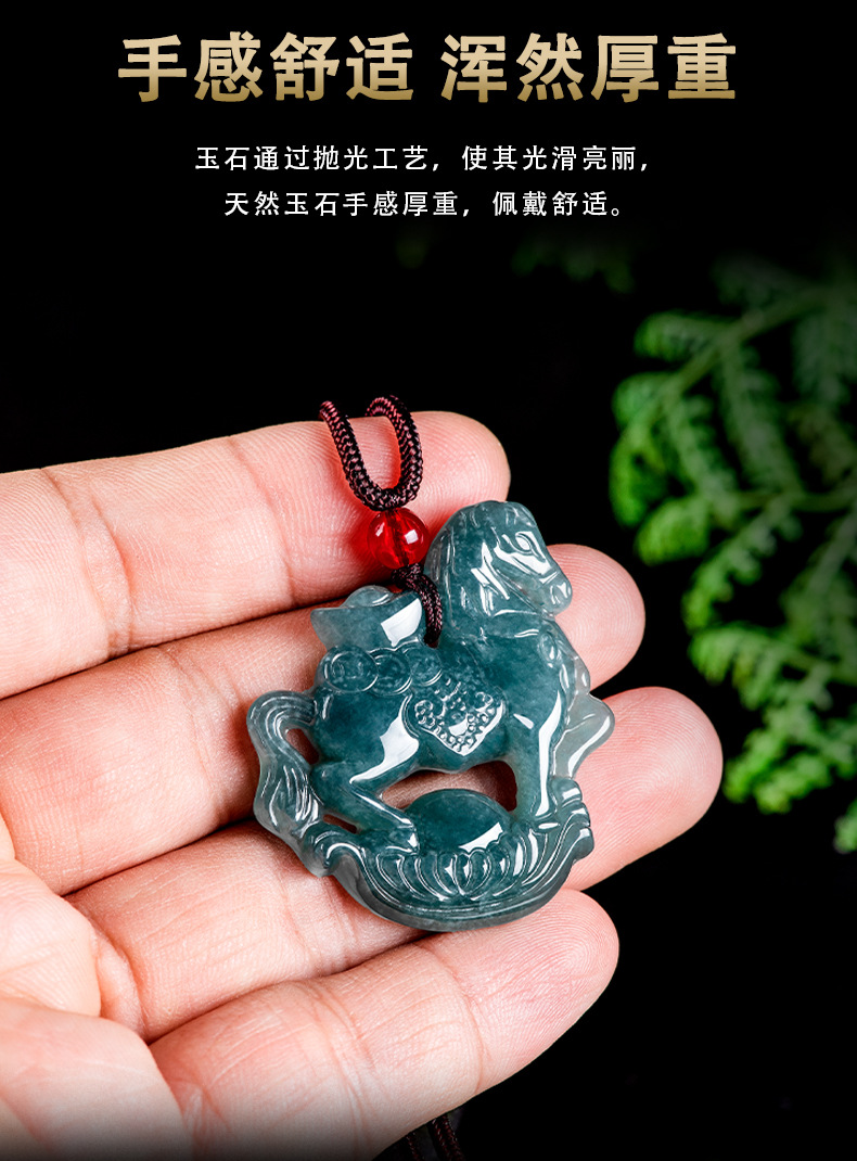 天然缅甸A货翡翠马上发财生肖马吊坠马牌糯种玉石挂件玉佩男女款