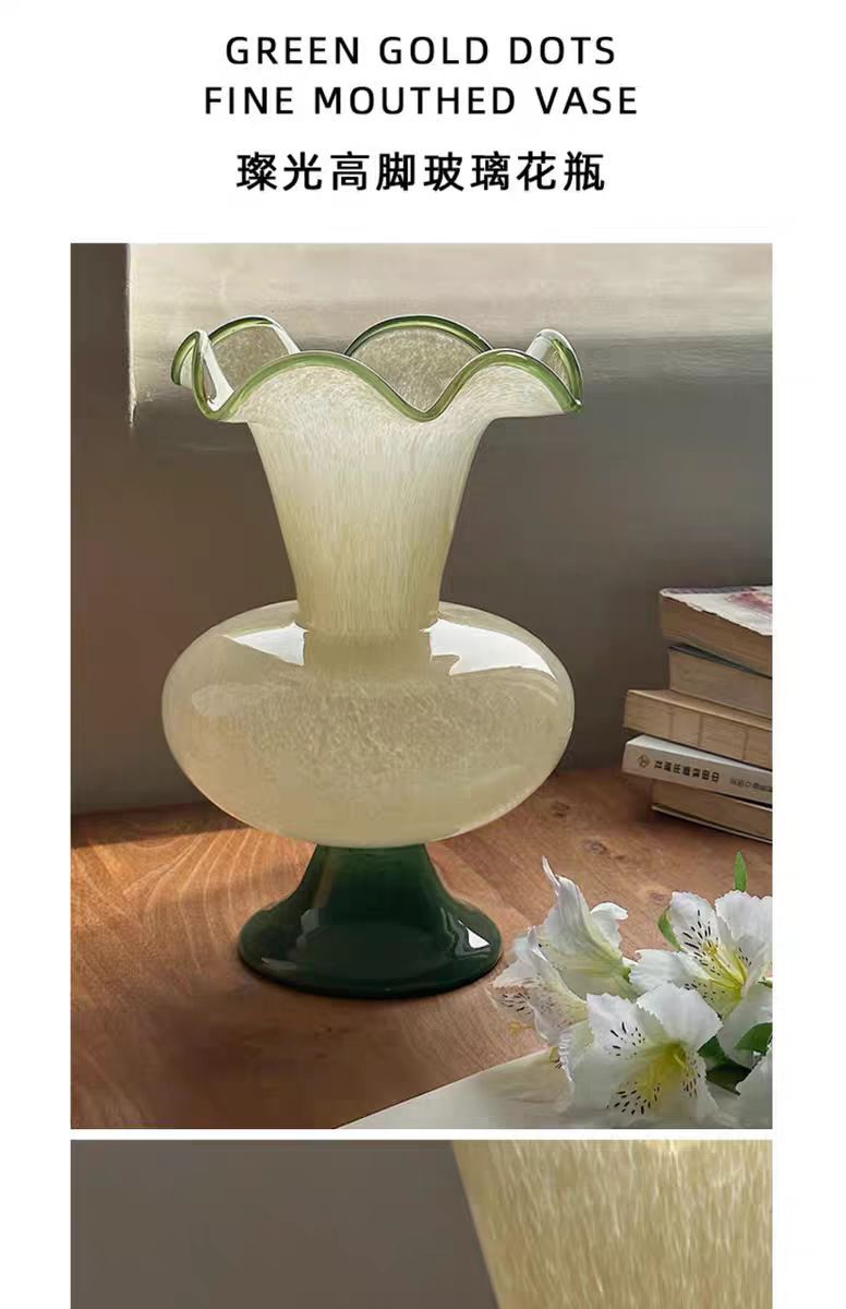 グリーンフィントン中古ガラス花瓶置物インスタ风波レース花瓶生け花高级感オーナメント