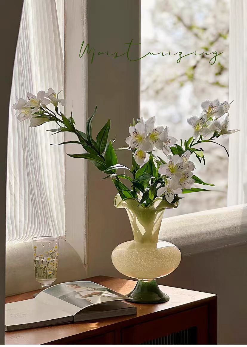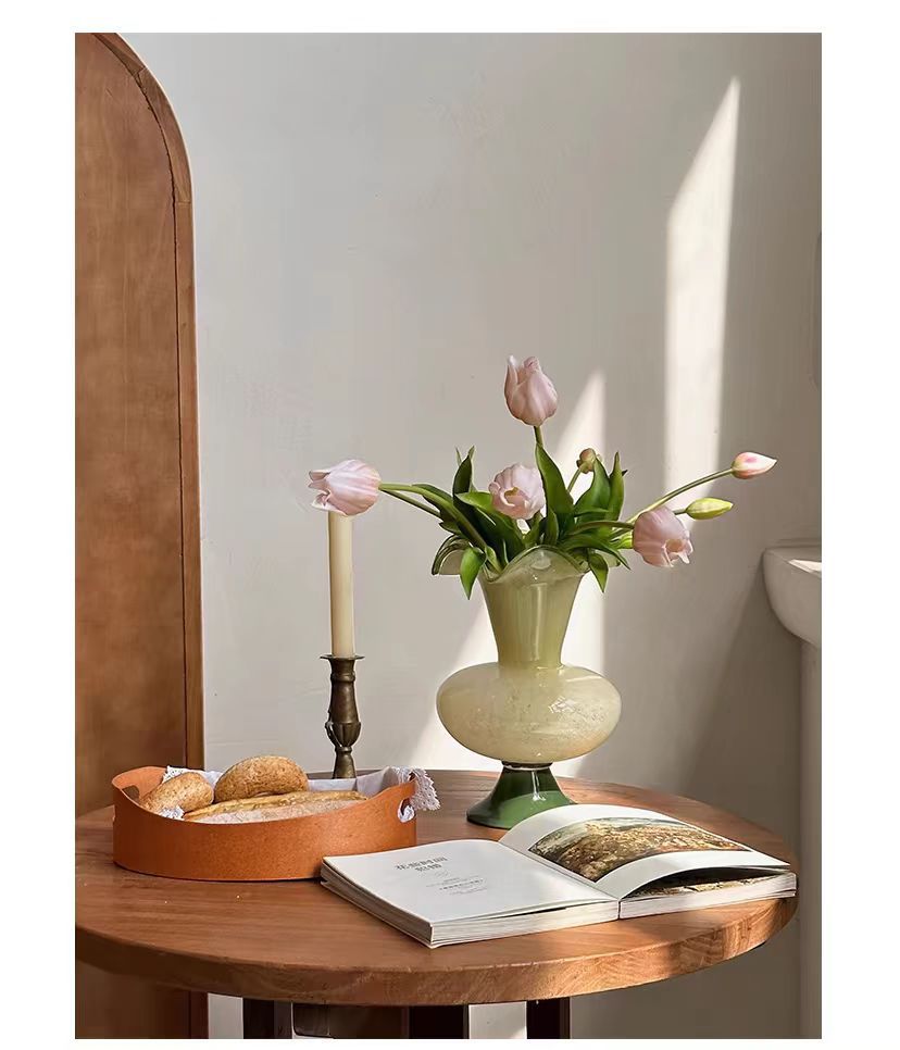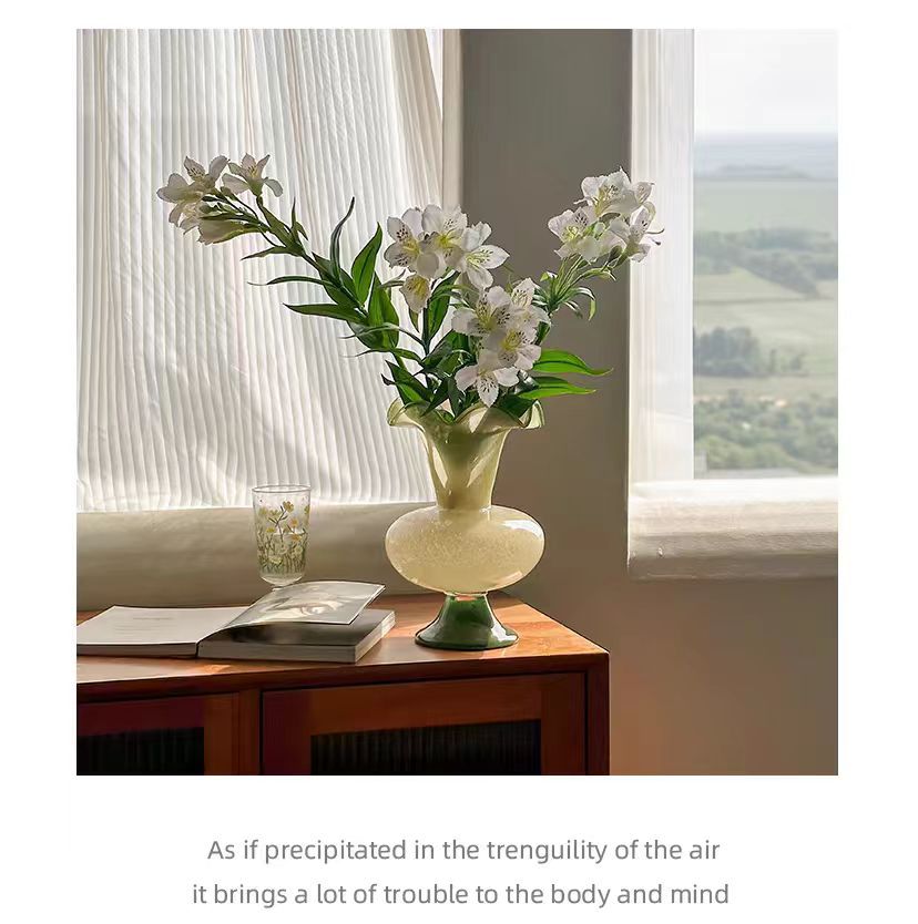 中世のわびさびスタイルグリーンフェントンガラス花瓶ホームガラスカラーマッチング風ランプ花瓶フラワーアレンジメント装飾装飾品