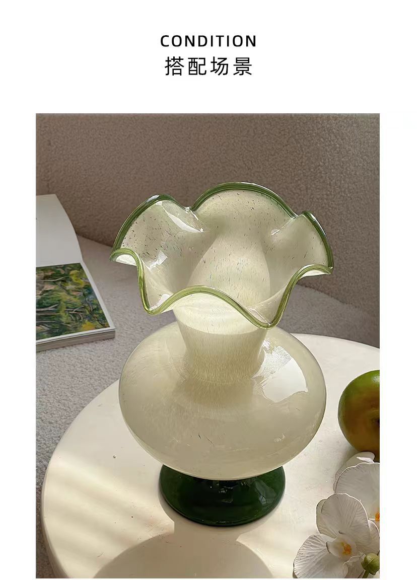 中古ガラス花瓶リビング生け花水耕栽培高级感プリーツスカートフレンチレトロ置物ダイニングテーブルソフトオーナメント
