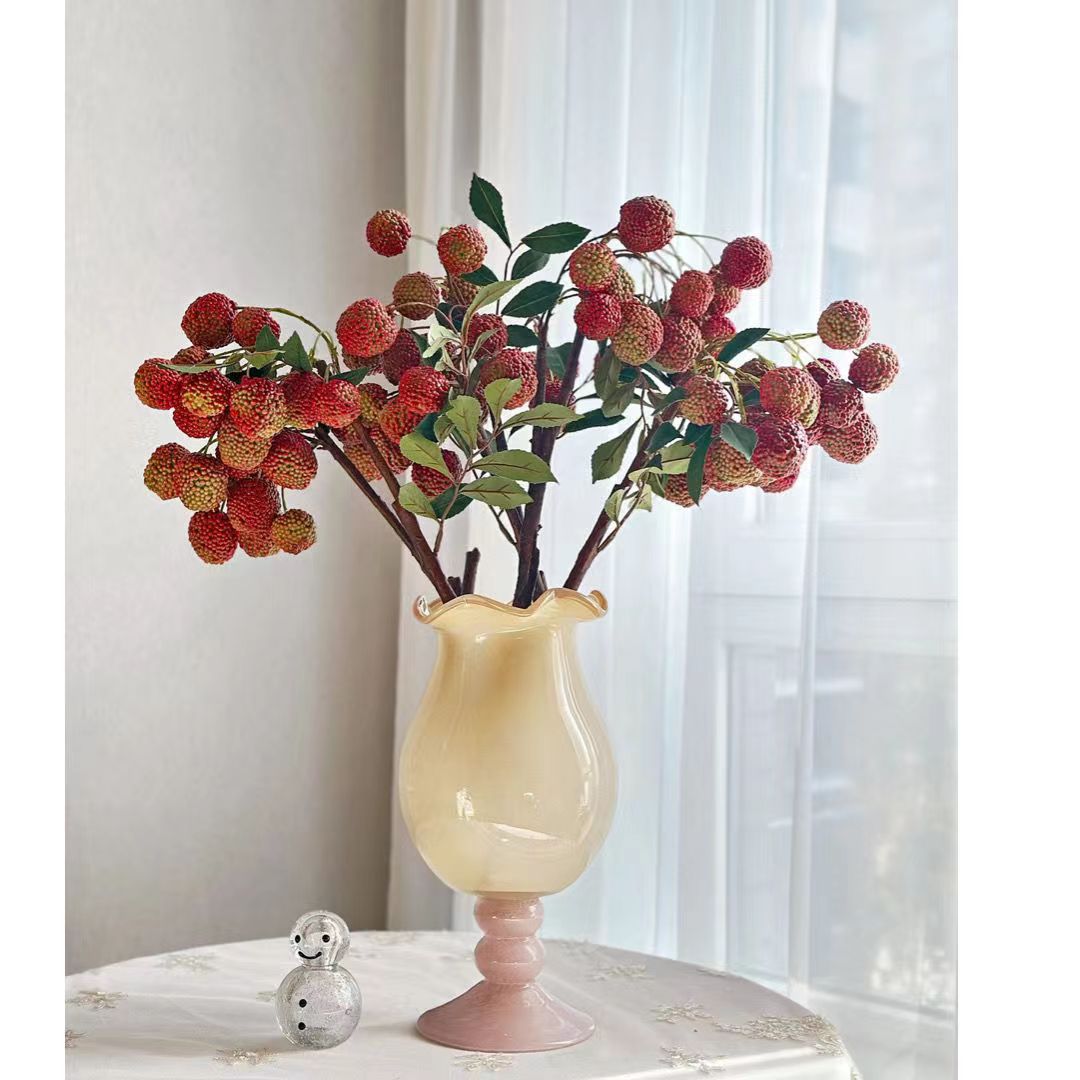 レトロ風ガラス花瓶中古フェントンフランス式すずらん手作り高足花器置物生け花器装飾家庭