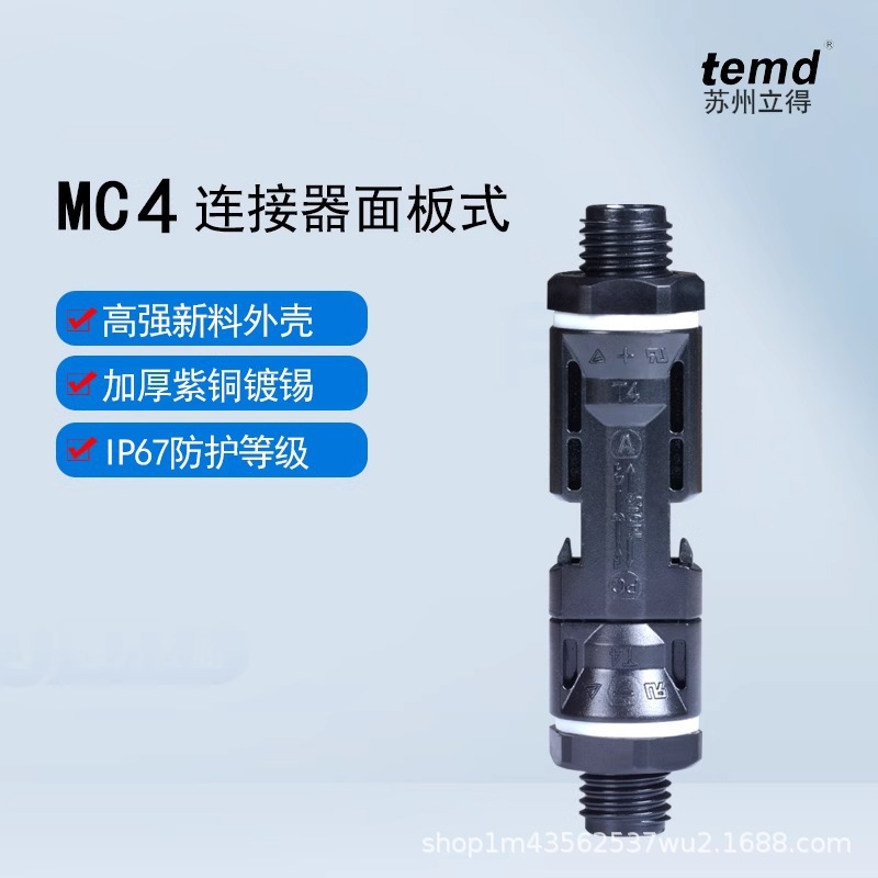 MC4太陽光パネル用コネクタ、MC4基板端プラグ、集電箱・インバーター用オス・メスコネクタ、IP68クイックコネクタ