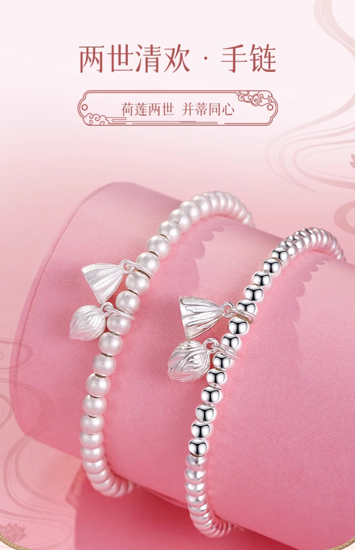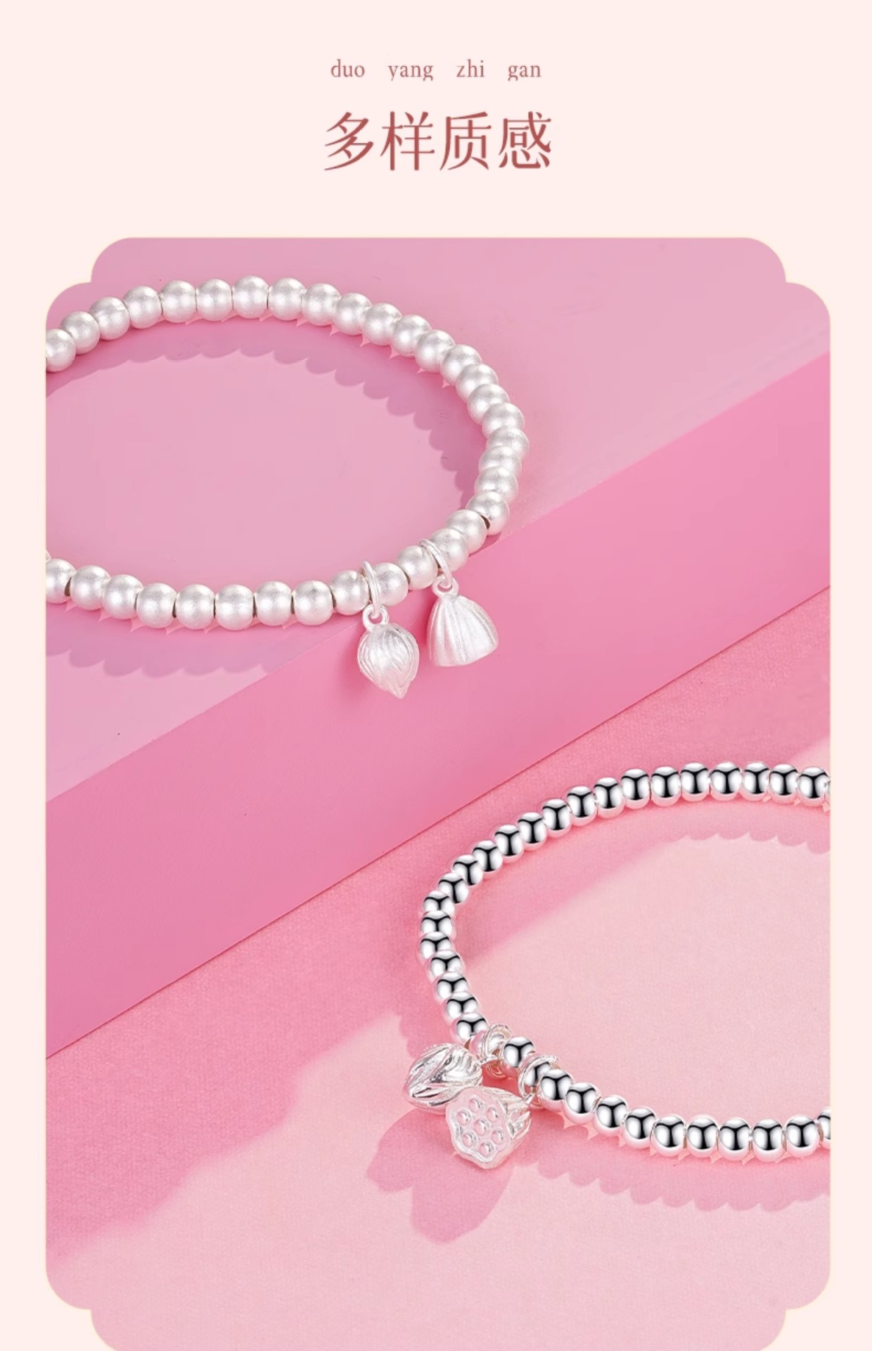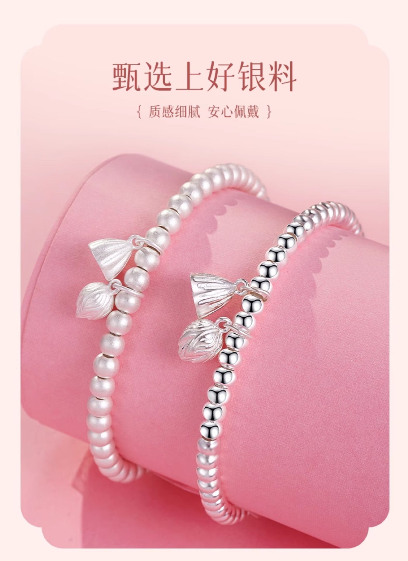 純銀999回転ビーズブレスレット足銀二世歓ブレスレット女性アクセサリーins小衆デザイン金店プレゼントドレナージ