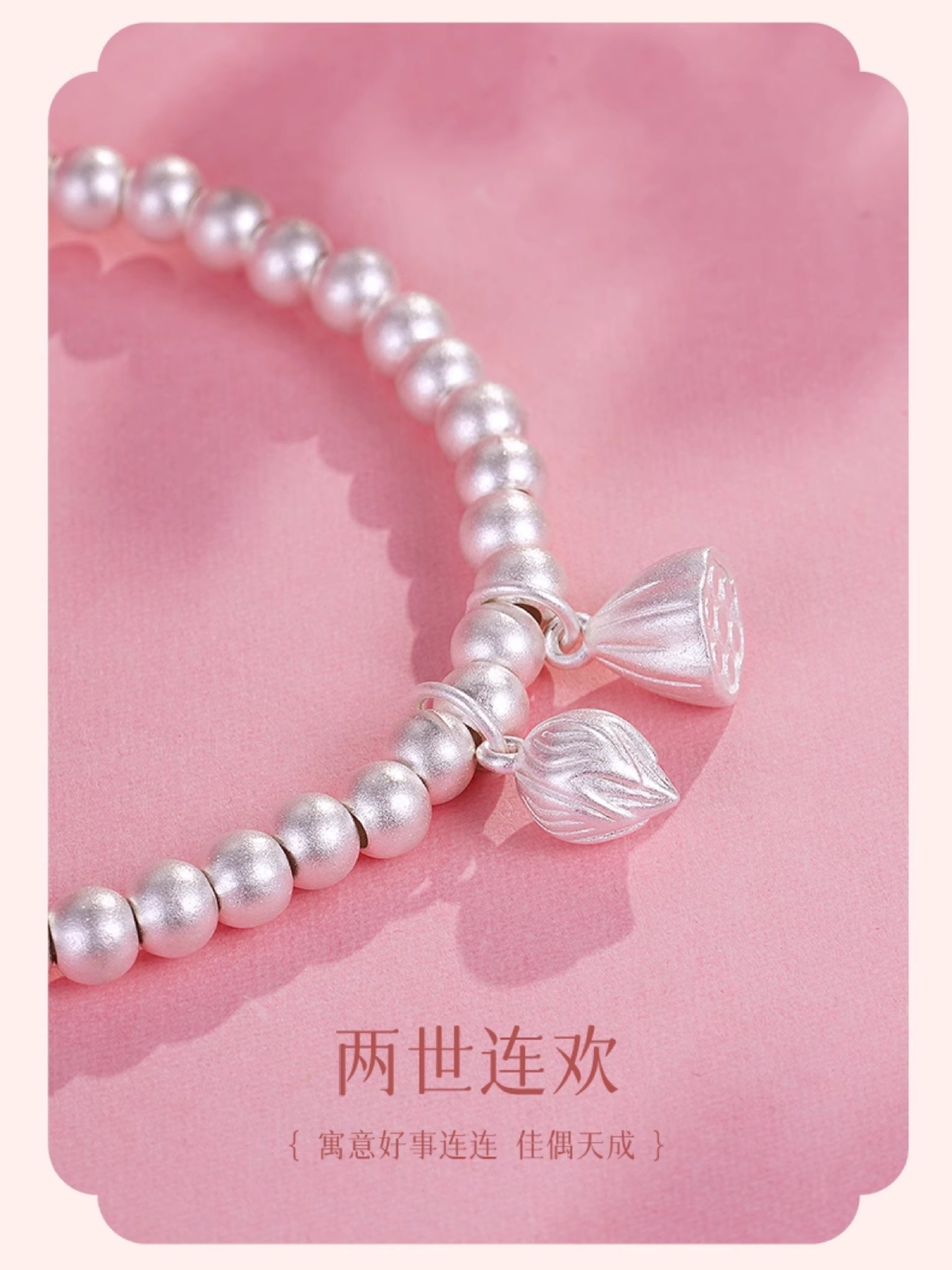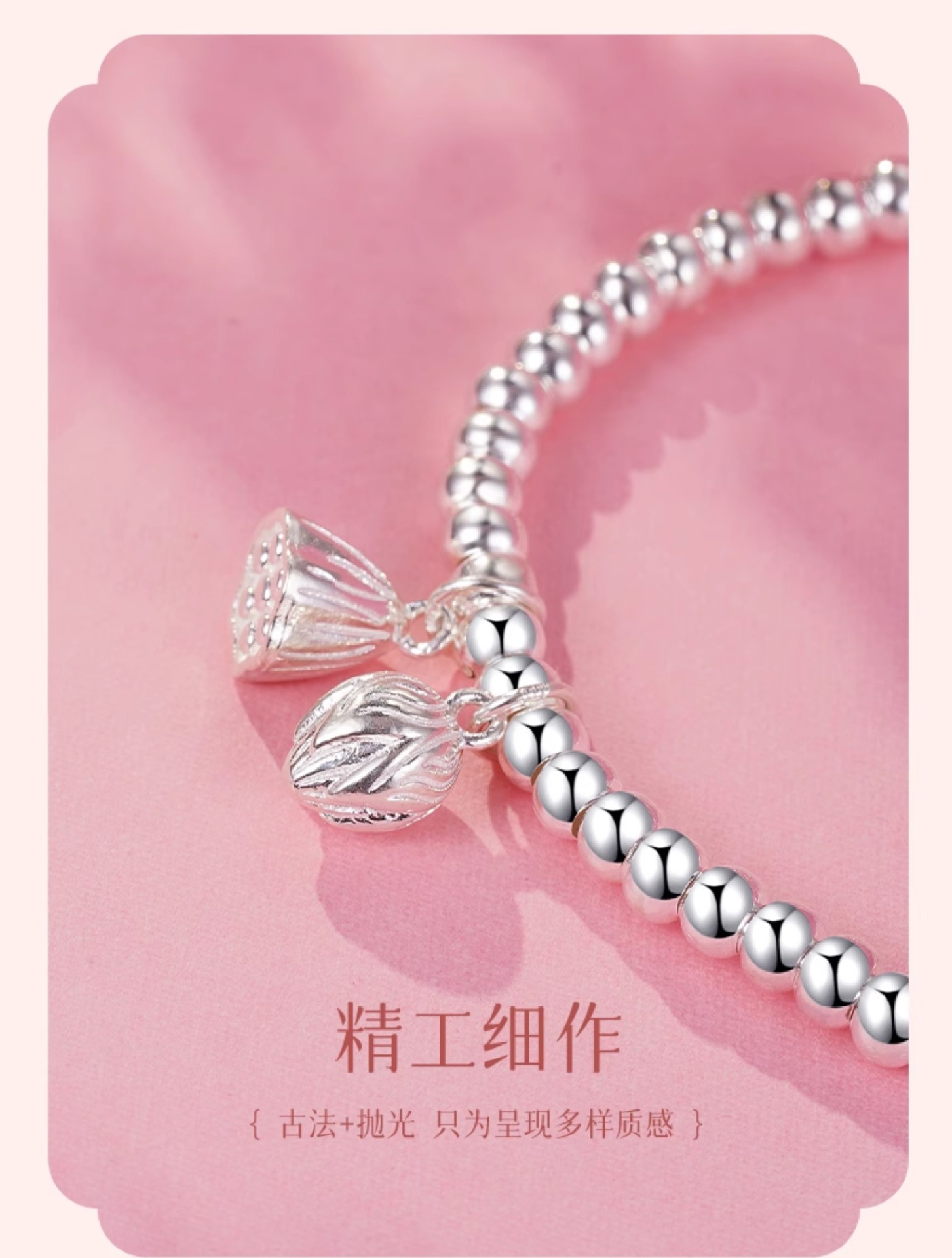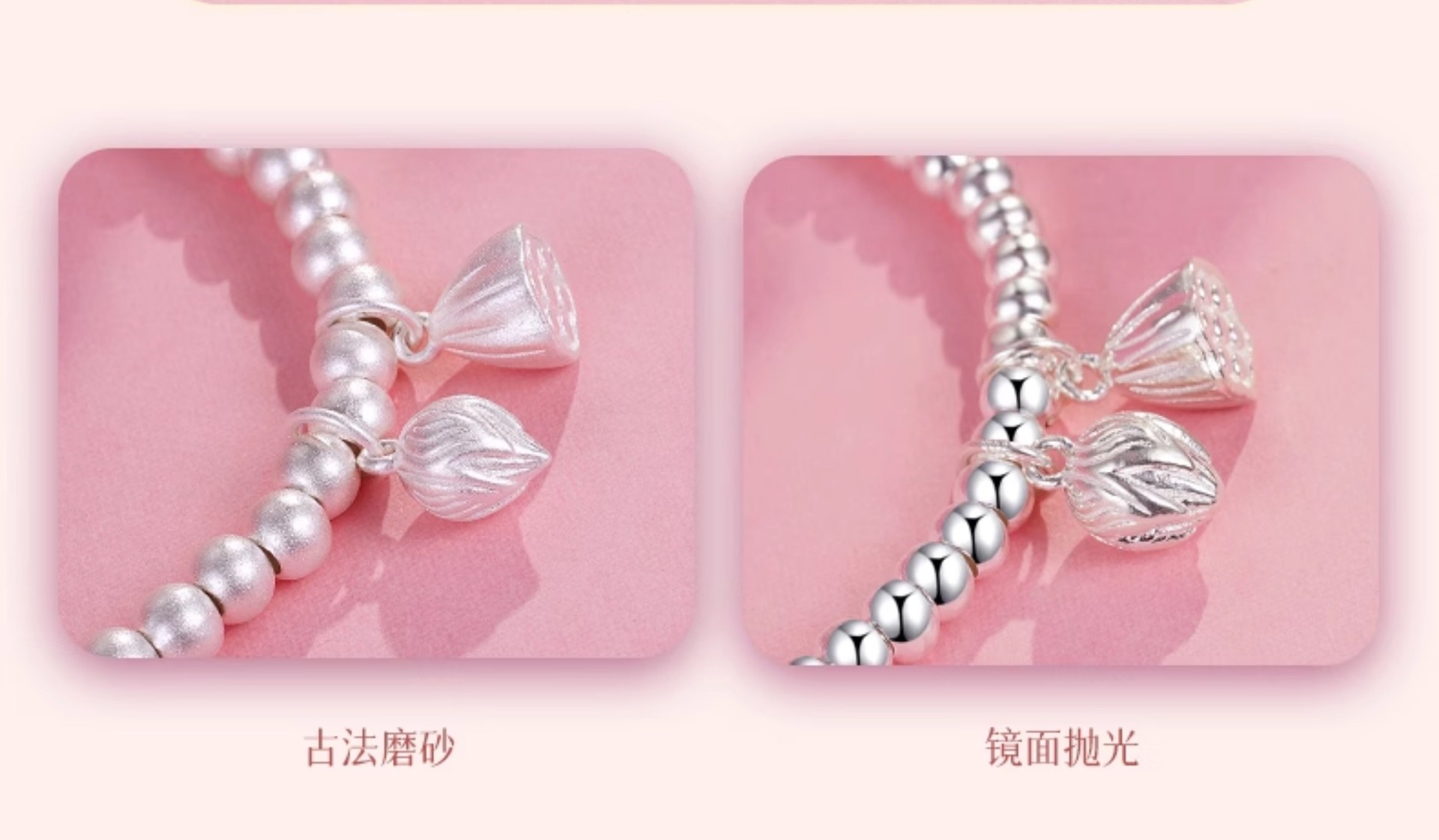 999純銀二世歓蓮のブレスレット女性の足の銀のブレスレットの誕生日520バレンタインデーのプレゼントは彼女にあげます。