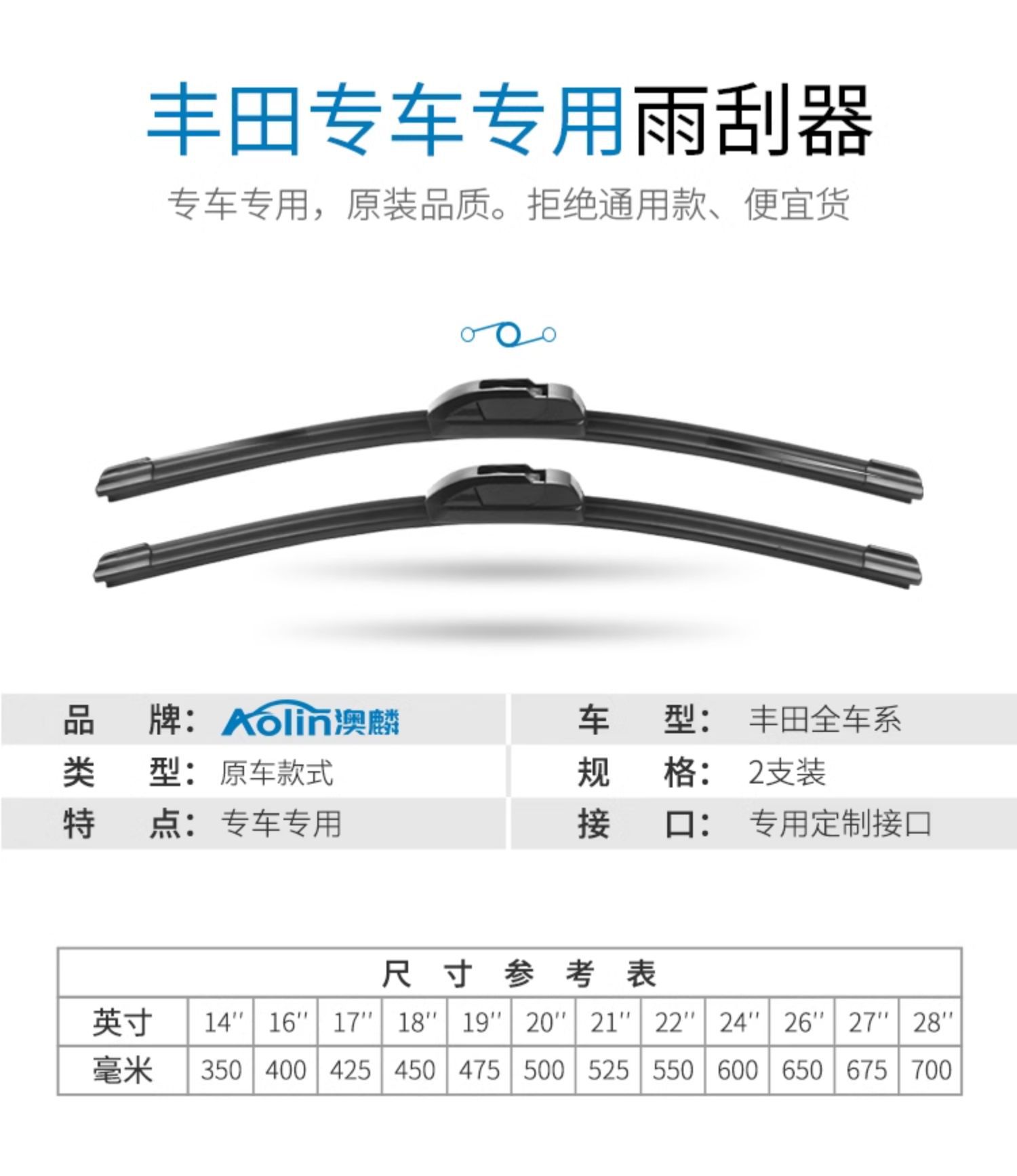 カムリ専用ボーンレスワイパーブレード/ワイパーブレードのオリジナルインターフェースペア