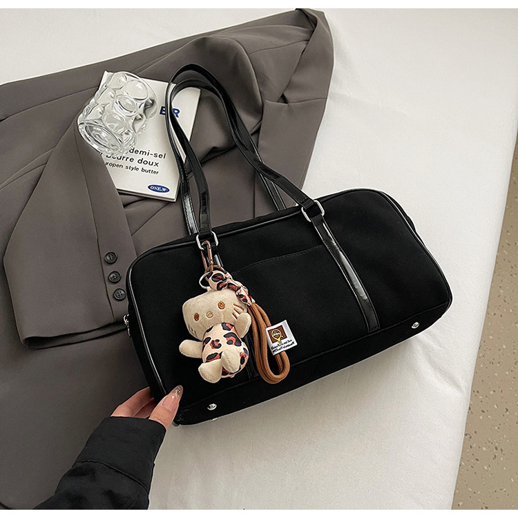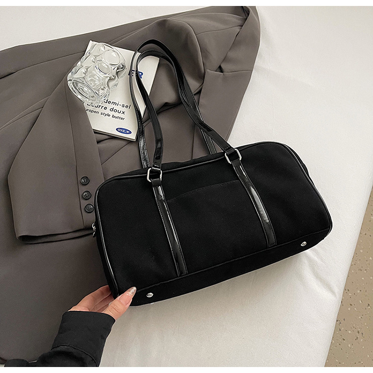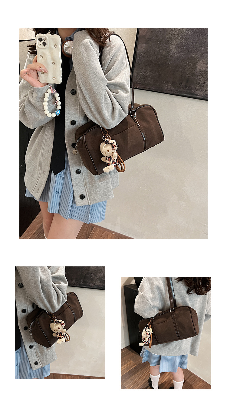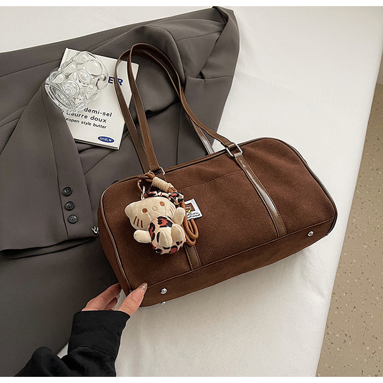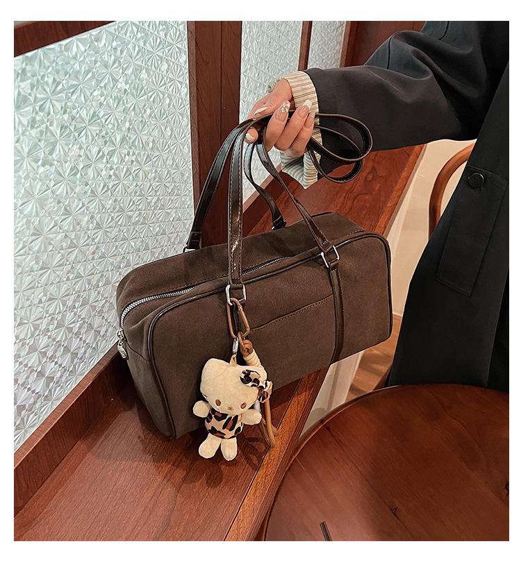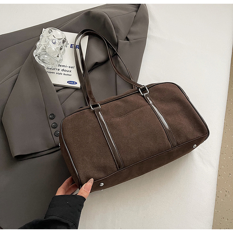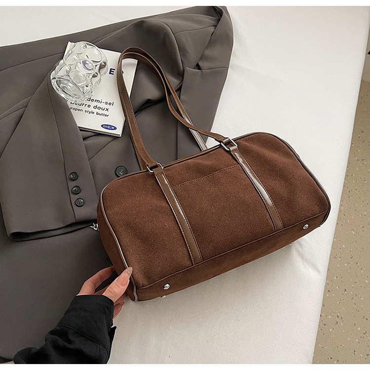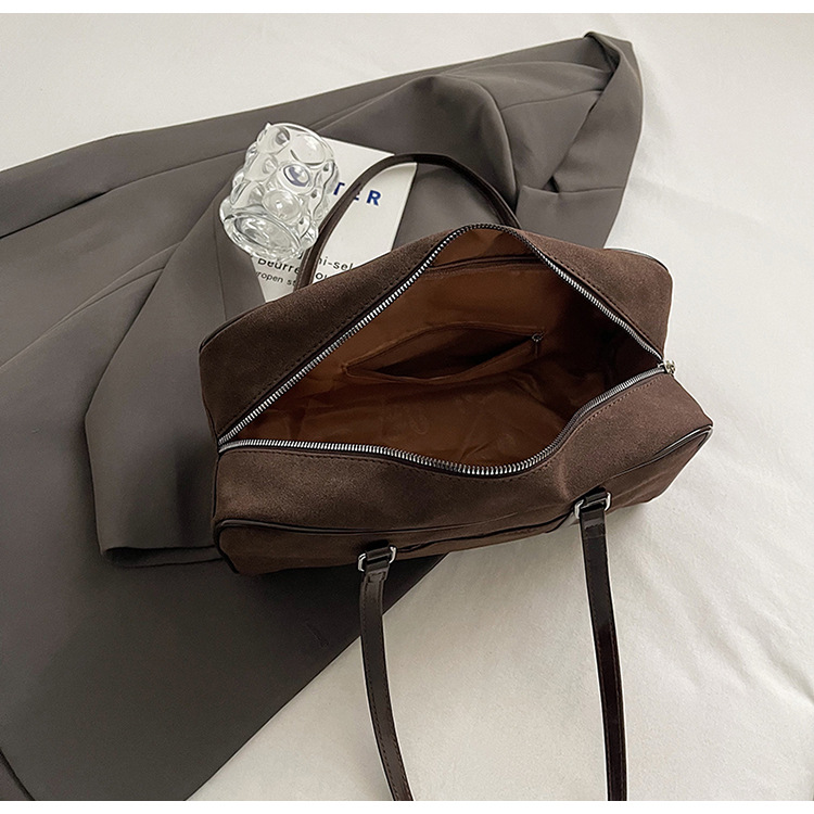 高級感スエードのフロストボストンバッグ大容量通勤カジュアル純色シングルショルダーバッグ